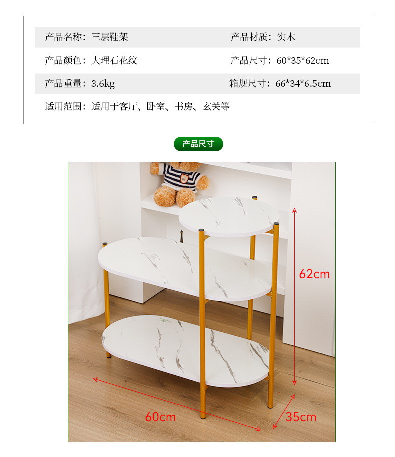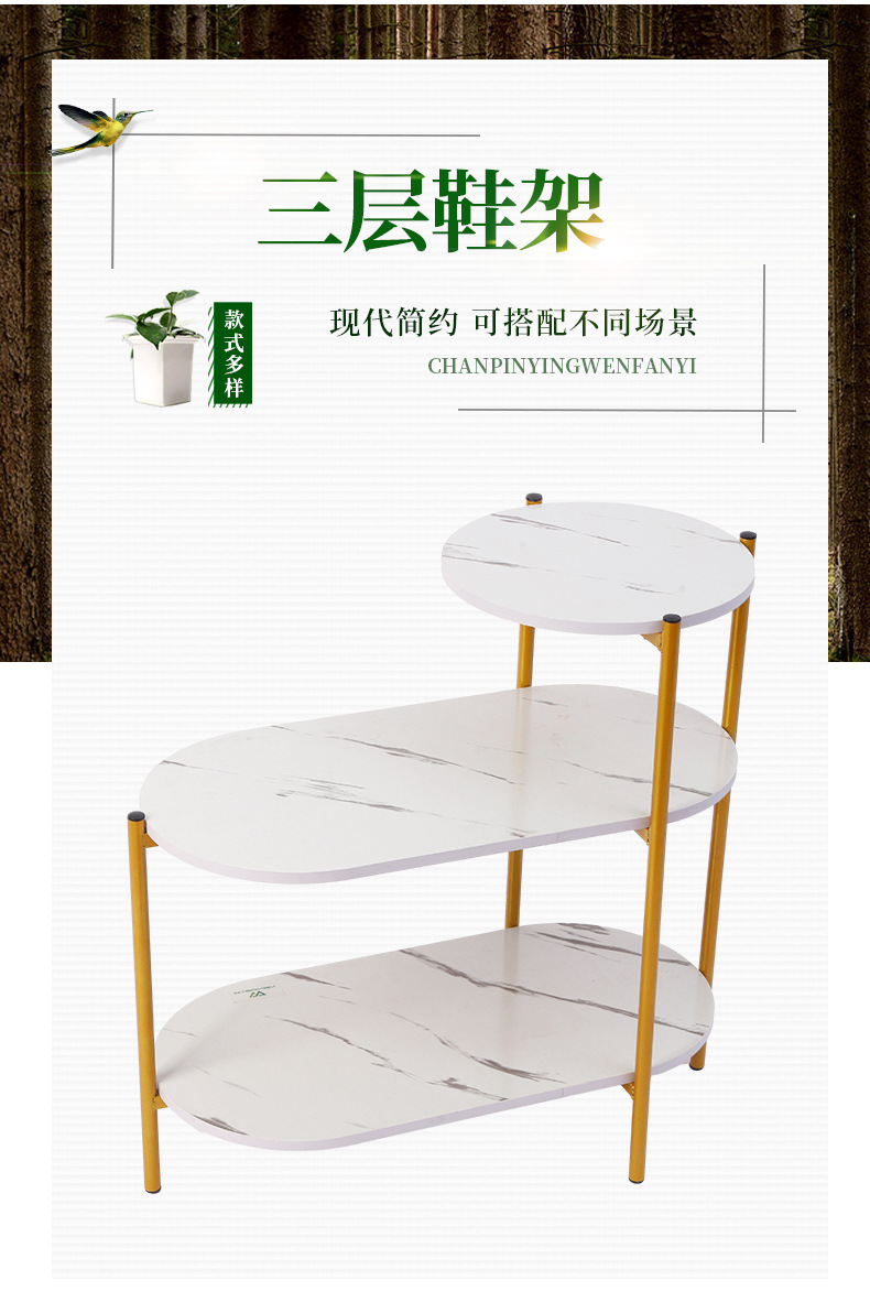 가벼운 고급 간단한 신발장 보관 랙 소파 옆 작은 테이블 3 층 신발장 슬레이트 커피 테이블 신발장