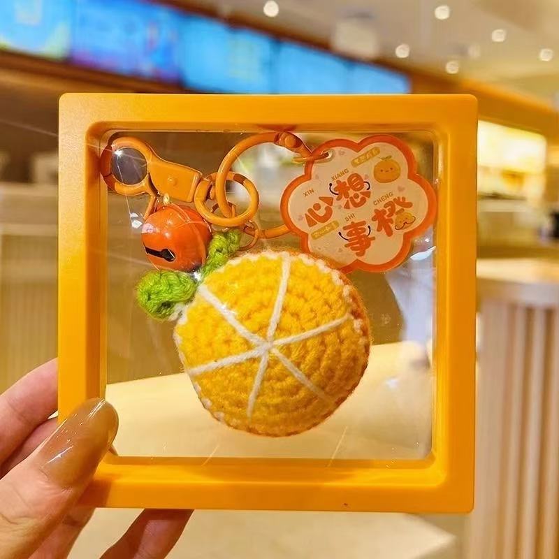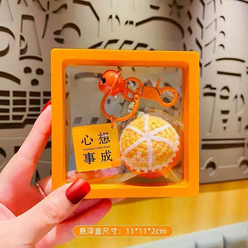 • 울 오렌지 열쇠고리 [소원 모두 이루어지세요] 사각형 카드 + 매달린 상자