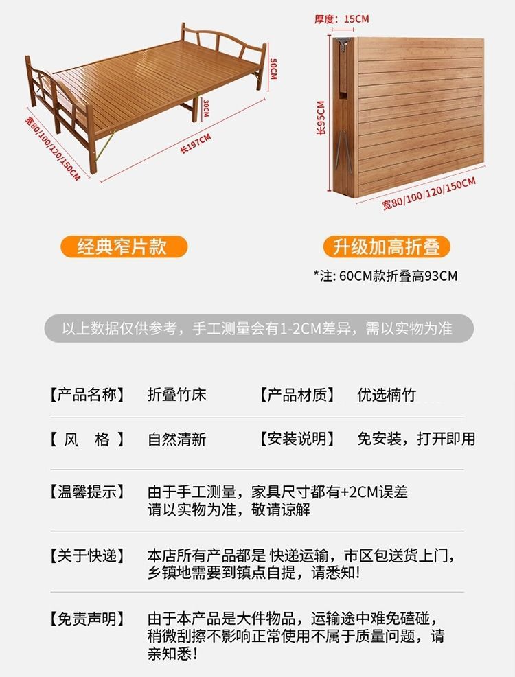 여름 대나무 침대 접이식 침대 간이 더블 침대 가정용 시원한 침대 임대 침대 싱글 침대 성인 하드 보드 낮잠 침대