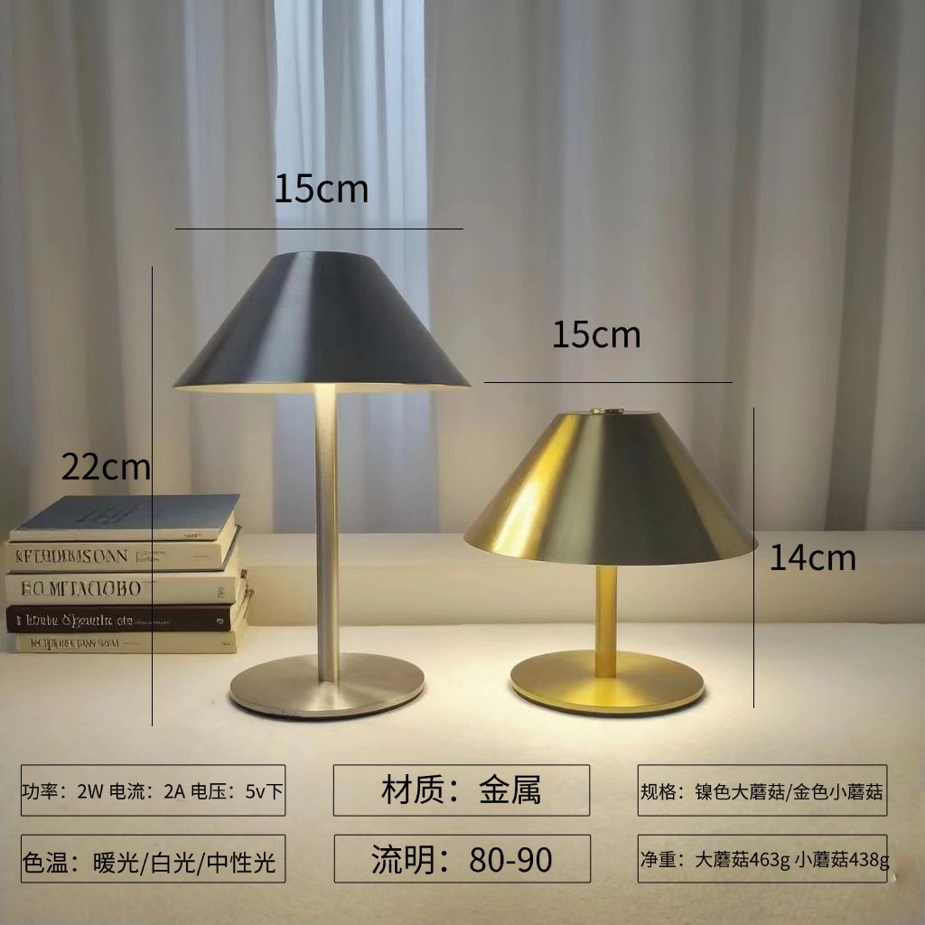 새로운 스타일의 간단한 침실 철 우산 모양의 버섯 테이블 램프 충전식 터치 바 분위기 램프 맞춤형 야간 조명