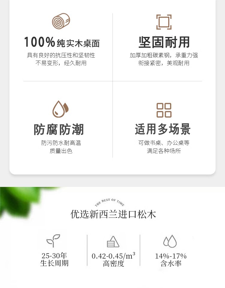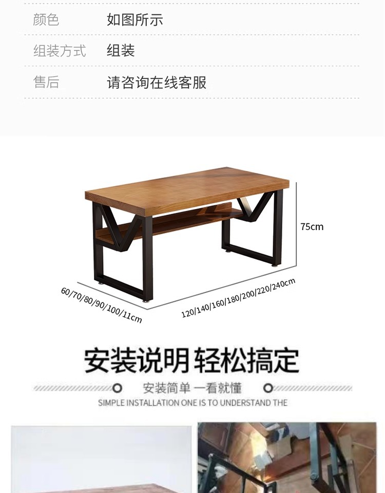 단단한 나무 책상 책장 가정용 컴퓨터 책상 철 탄소강 작업대 소나무 책상 간단한 긴 테이블