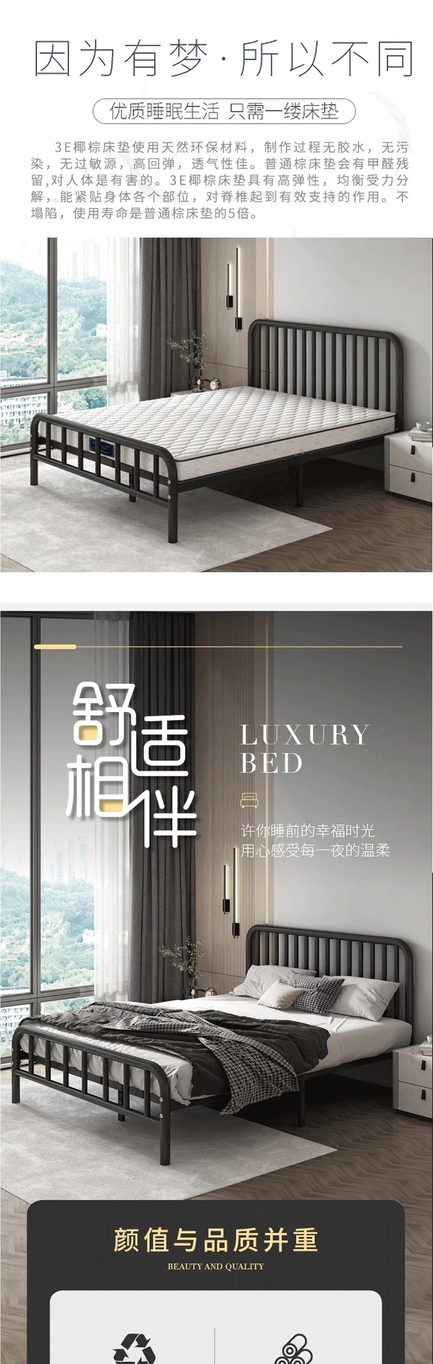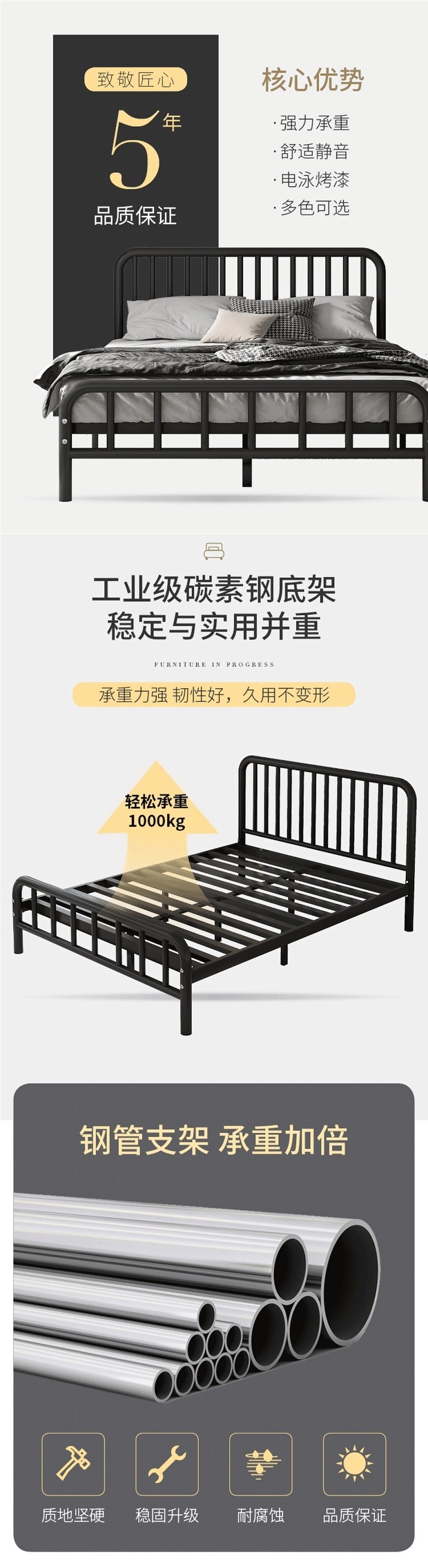 침대 모던 심플 철제 침대 1.5m 더블 1.8 어린이 철제 침대 임대 주택 철제 프레임 북유럽 싱글 1.2m스토어 가기