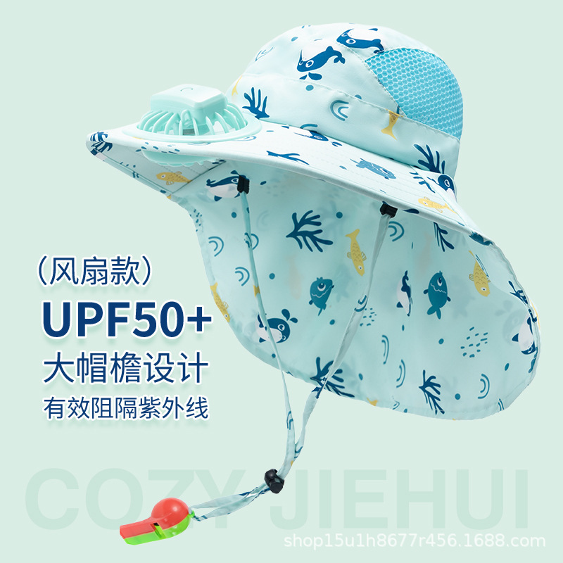 팬이 달린 어린이용 태양 모자 여름 소년과 소녀 큰 챙 목도리 태양 모자 아기 태양 모자 어부 모자
