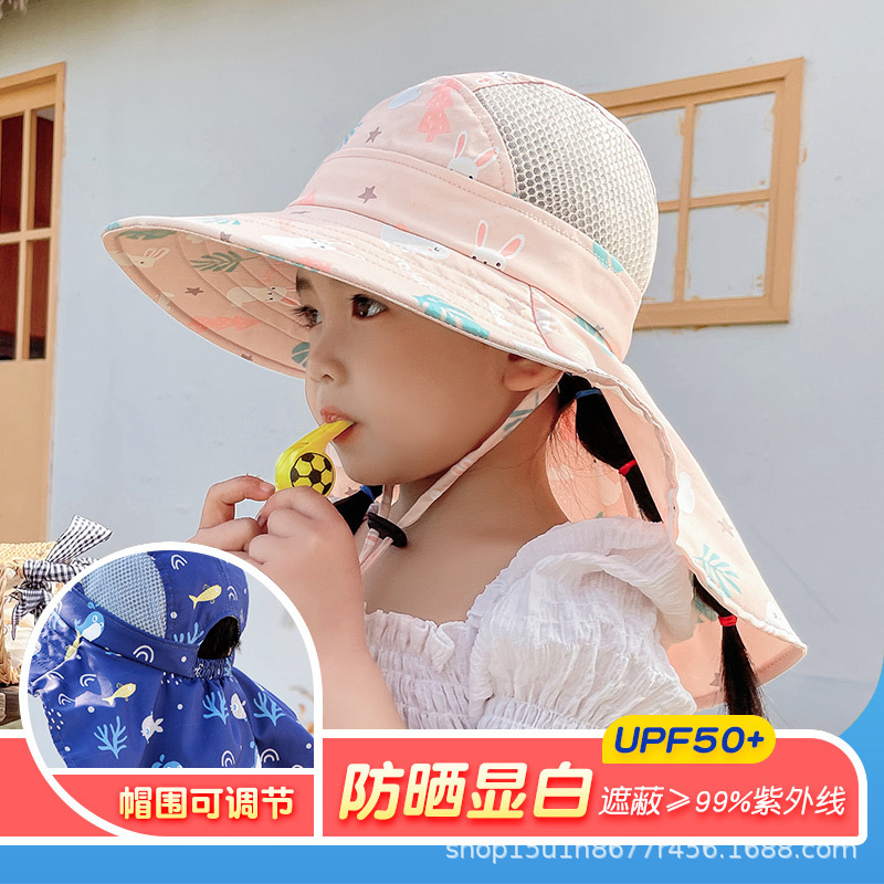 팬이 달린 어린이용 태양 모자 여름 소년과 소녀 큰 챙 목도리 태양 모자 아기 태양 모자 어부 모자스토어 가기