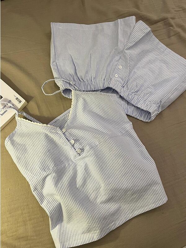 2025 새로운 클라우드 코튼 잠옷 여성 여름 반팔 반바지 달콤하고 귀여운 만화 숙녀 홈웨어 세트