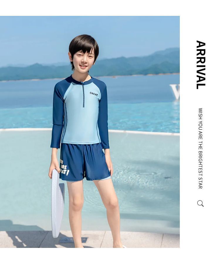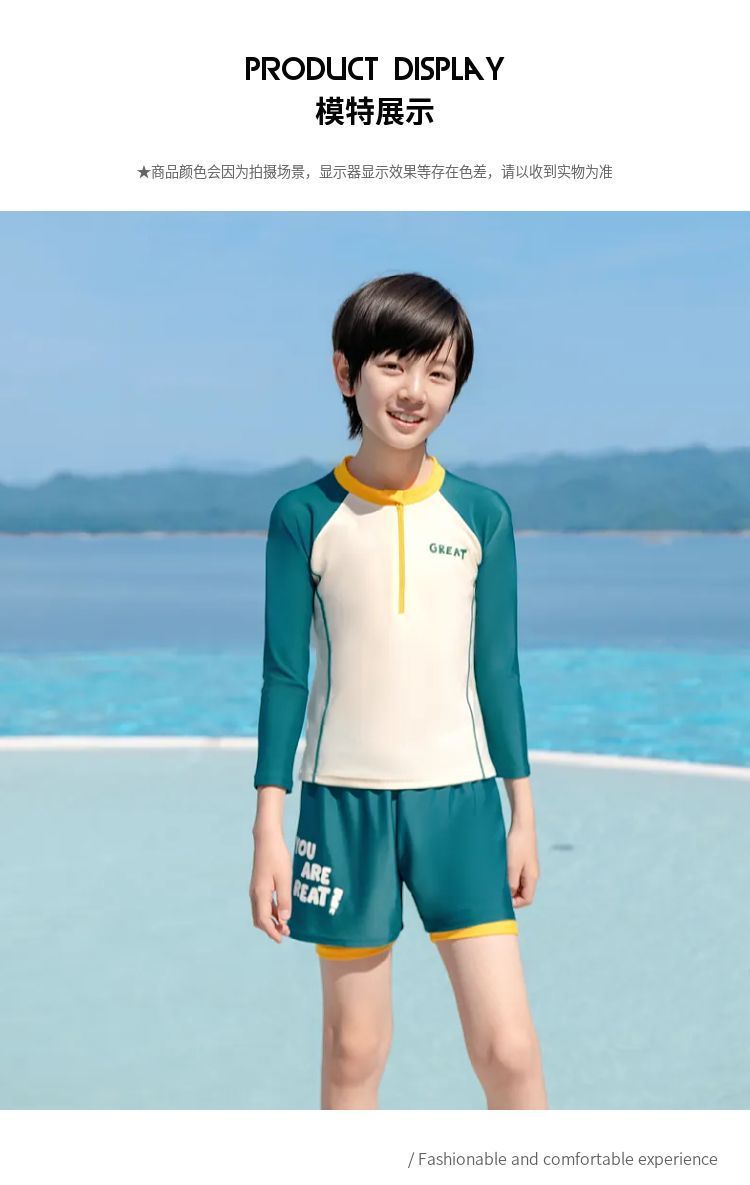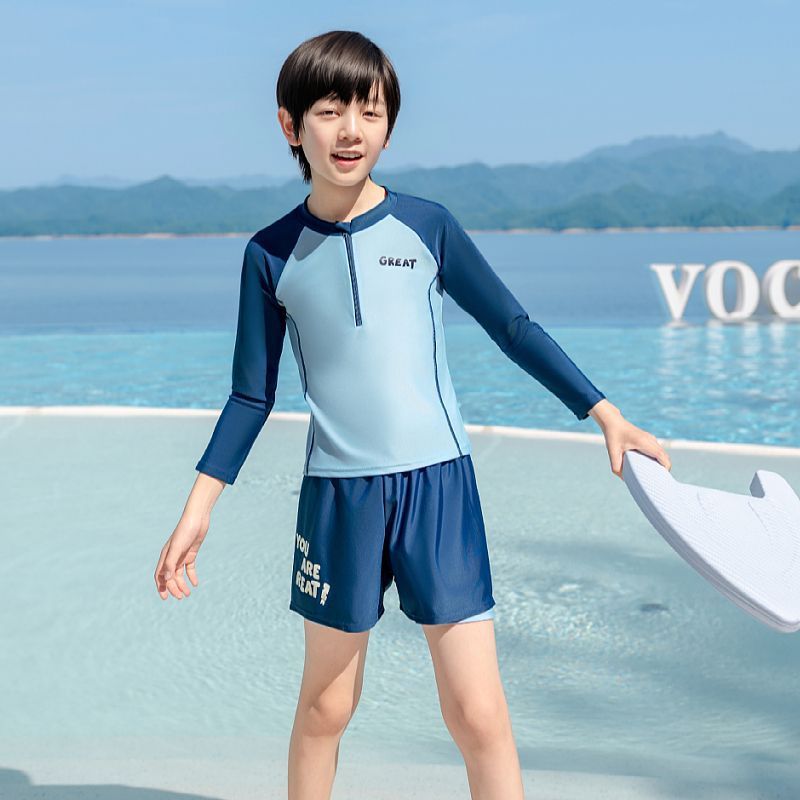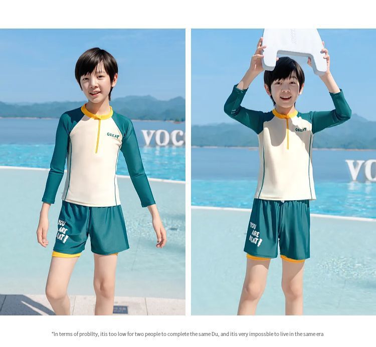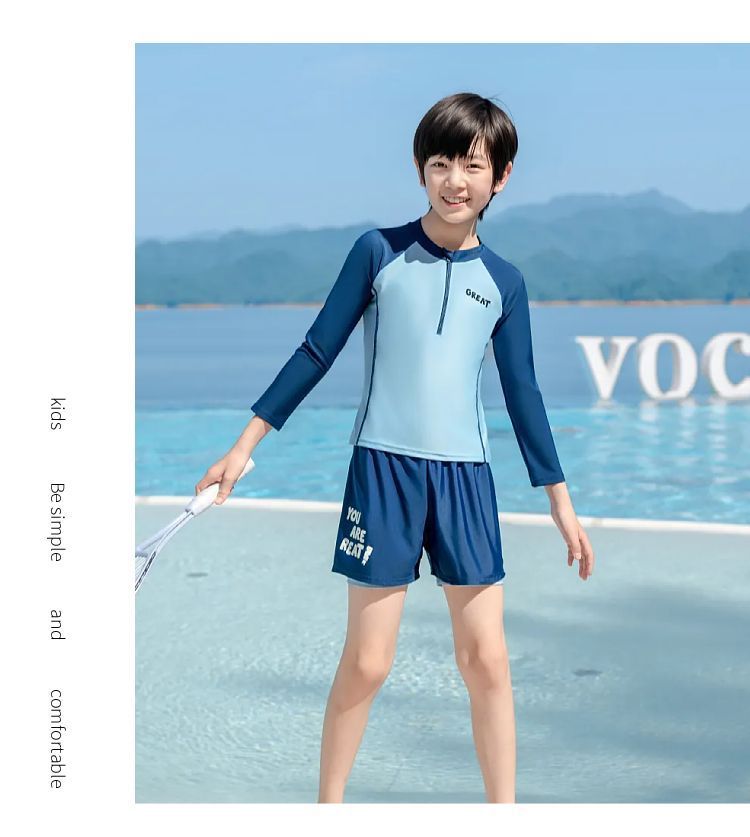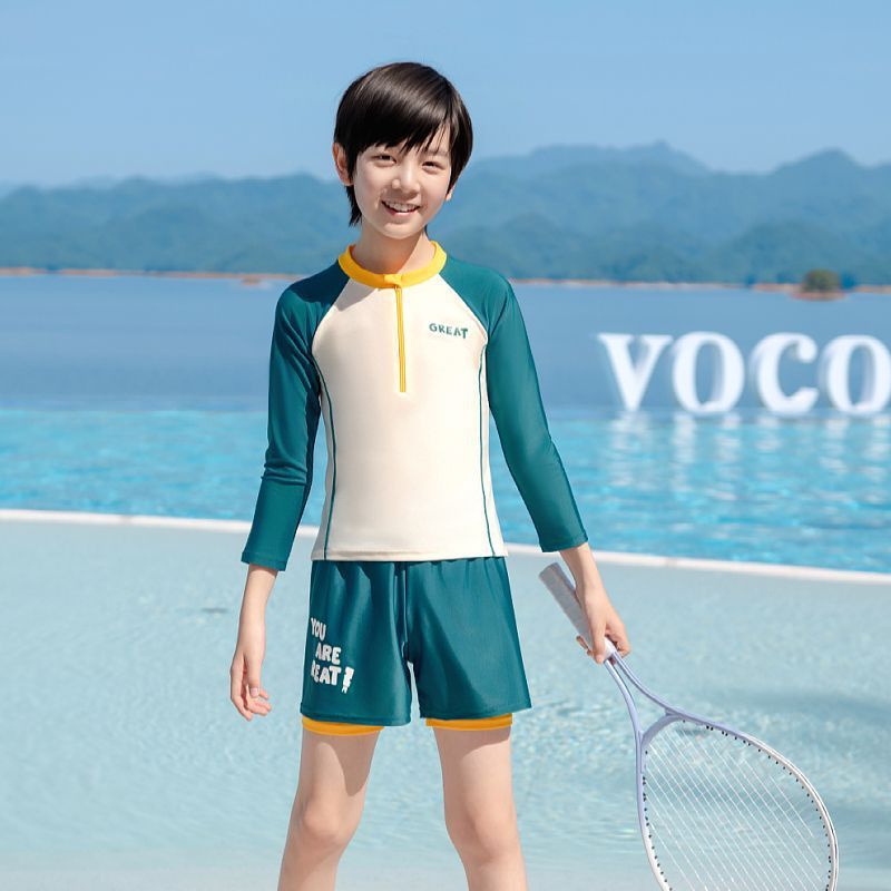 아동용 수영복 소년 2025 새로운 스플릿 수영복 중대형 어린이 소년 및 청소년 자외선 차단 수영 트렁크 세트 장비스토어 가기