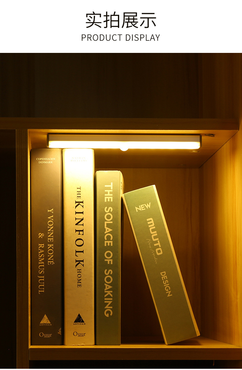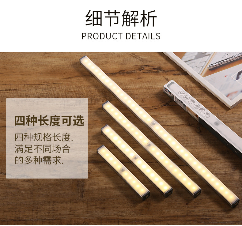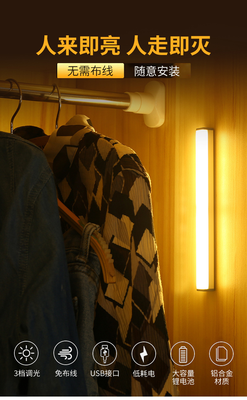 Led 인체 센서 빛 지능형 자동 무선 야간 조명 긴 스트립 충전 주방 캐비닛 옷장 라이트 스트립 빛스토어 가기