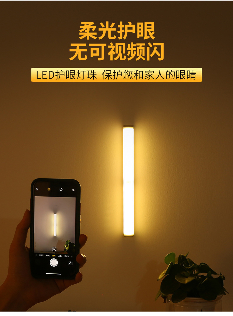 Led 인체 센서 빛 지능형 자동 무선 야간 조명 긴 스트립 충전 주방 캐비닛 옷장 라이트 스트립 빛