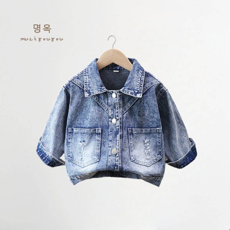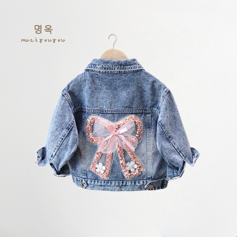 여아 데님 재킷, 세련된 자수 베이비 긴팔 상의, 2025 봄 가을 신작 아동 소, 중, 대 아동 재킷스토어 가기