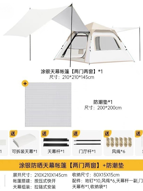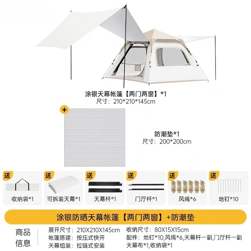 신형 올인원 자동 텐트 플로우 화이트 대형 텐트 야외 캠핑 그늘막 피크닉