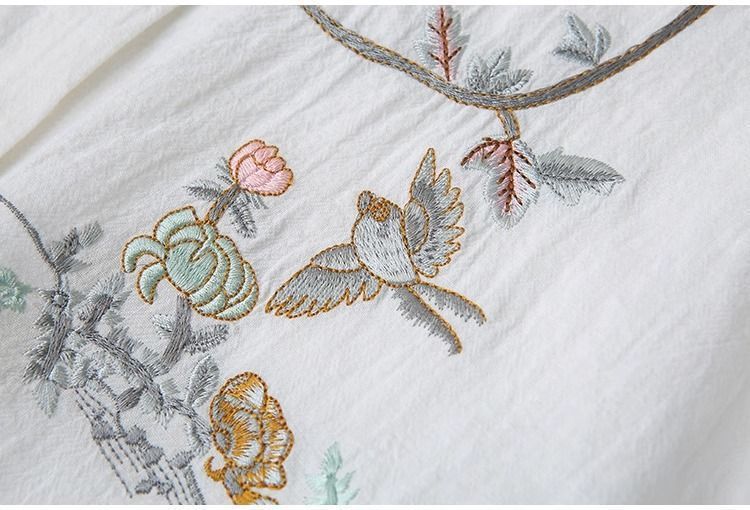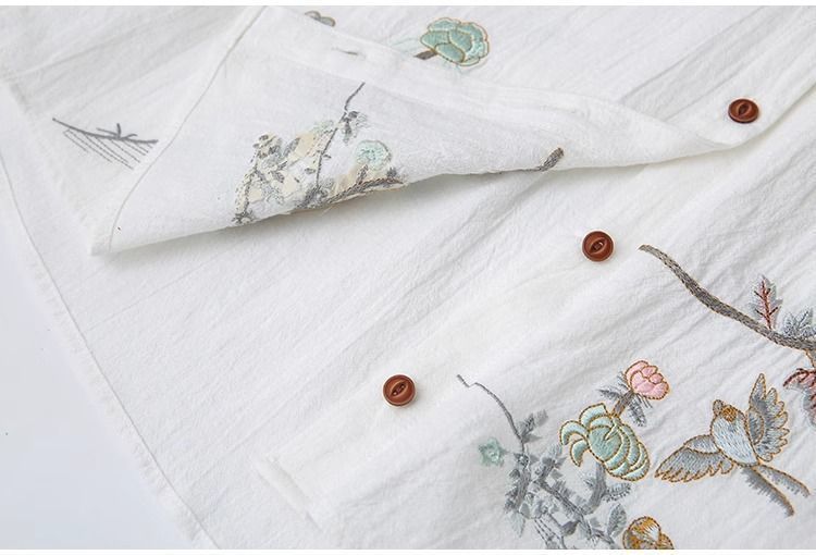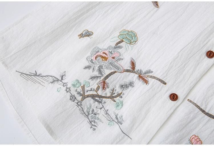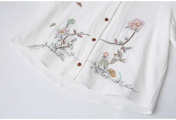 Guofeng 25 여름 고품질 린넨 반팔 카디건 여성 탑 루즈 대형 자수 셔츠 여성용 코튼 린넨 셔츠