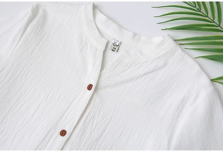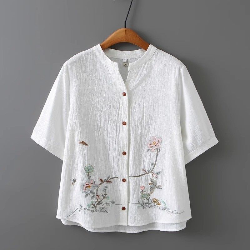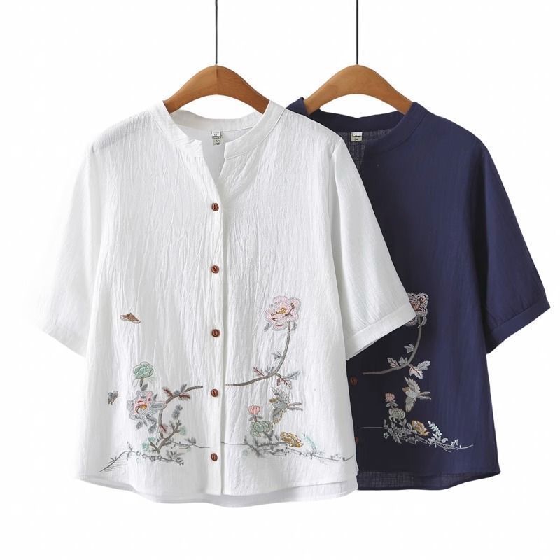 Guofeng 25 여름 고품질 린넨 반팔 카디건 여성 탑 루즈 대형 자수 셔츠 여성용 코튼 린넨 셔츠스토어 가기