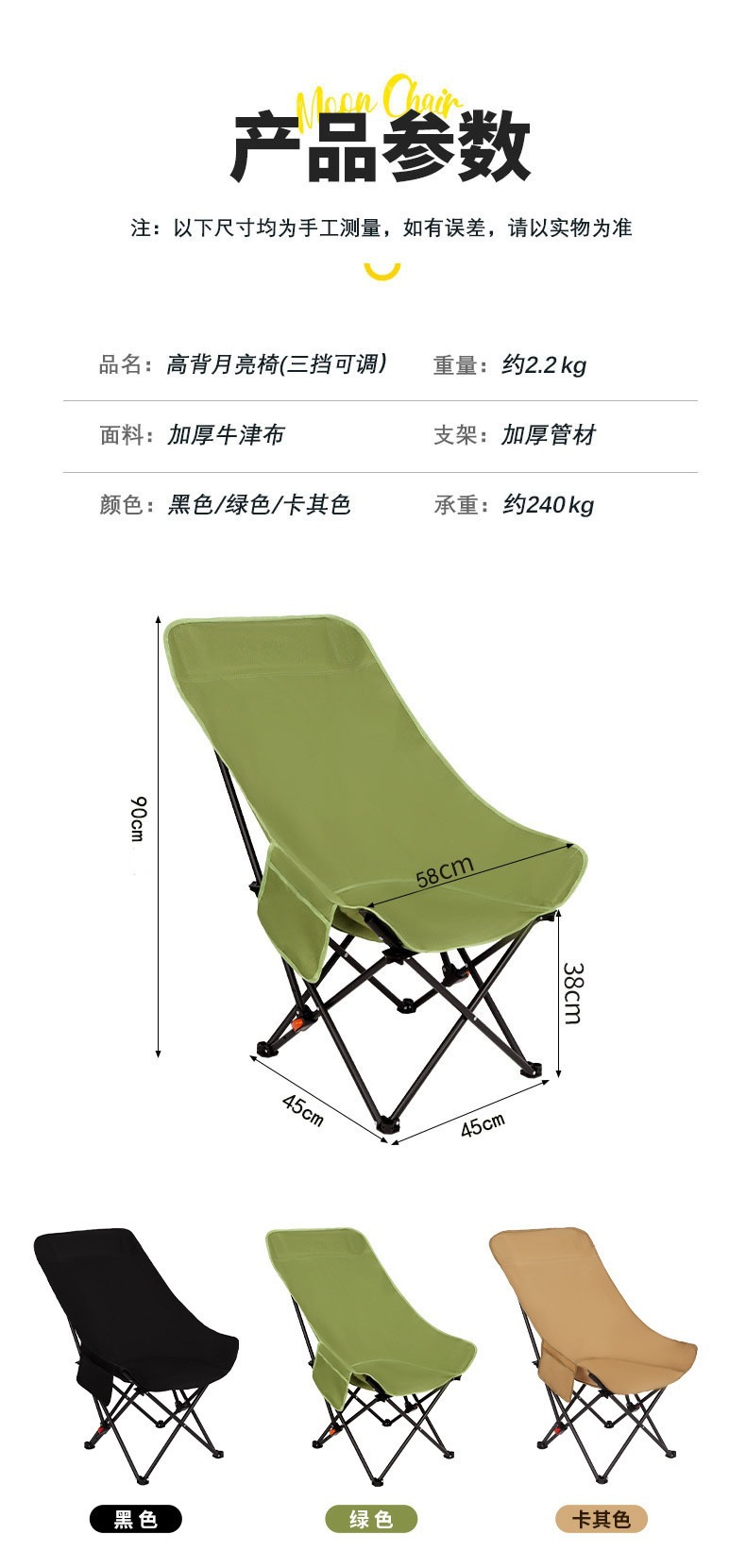 낚시 의자, 등받이 조절 가능, 레이저 의자, 안락 의자, 앉을 수 있는 의자, 높은 등받이 야외 접이식 의자, Moon 3단 기어 없음