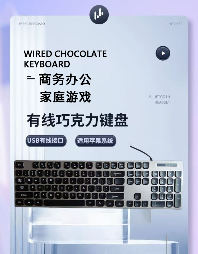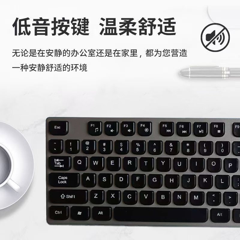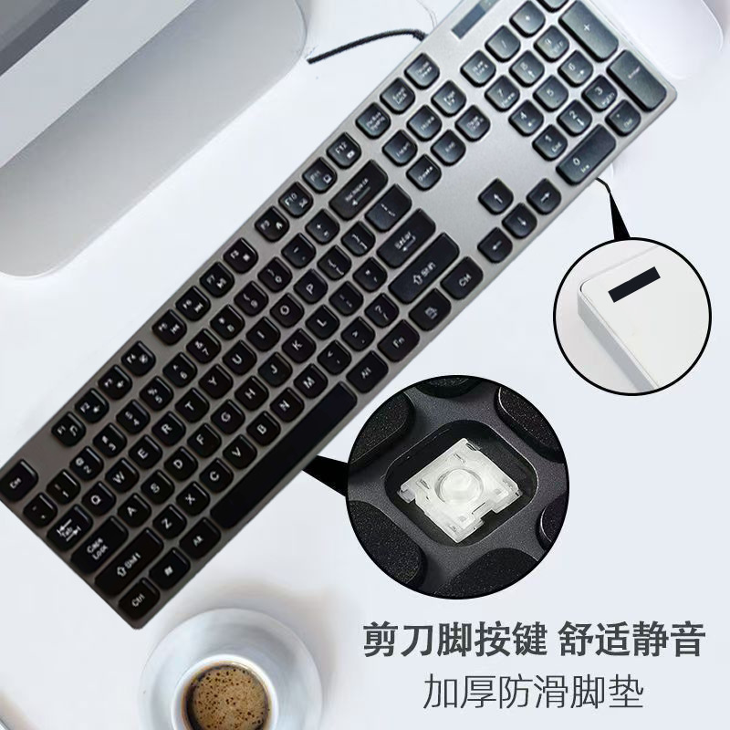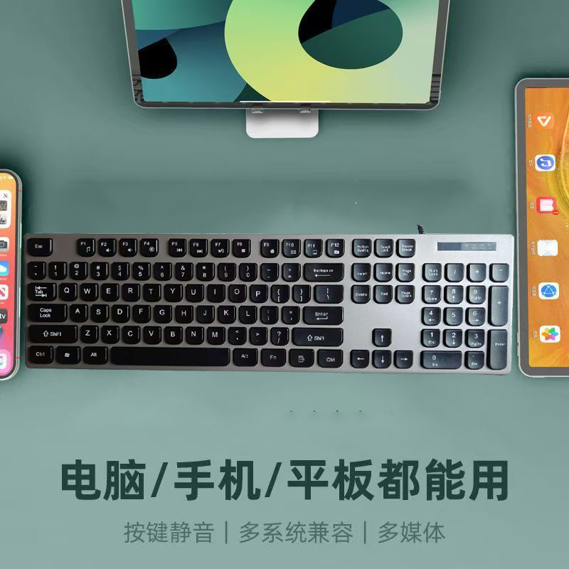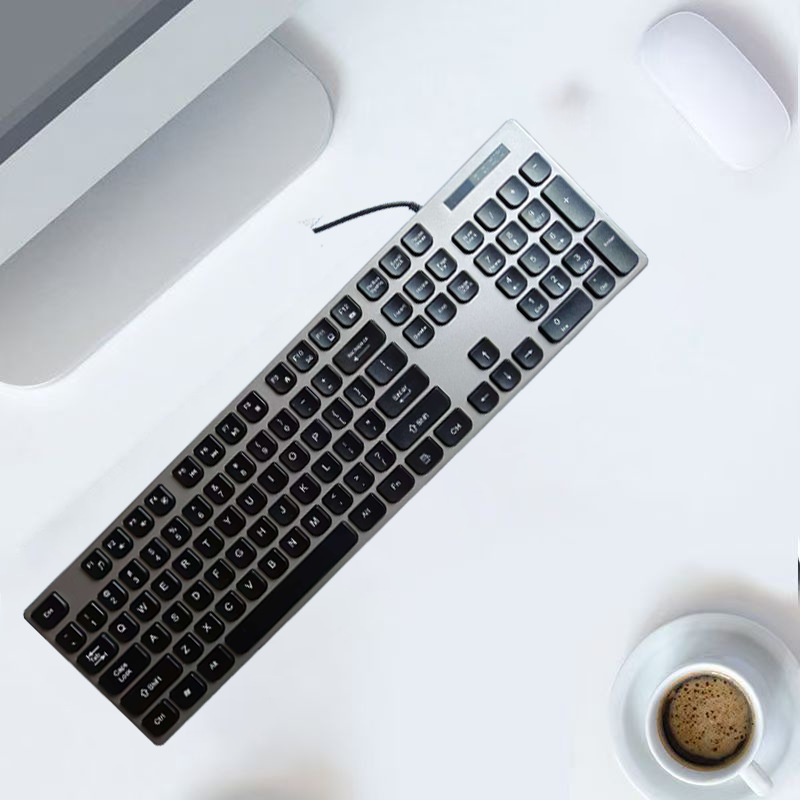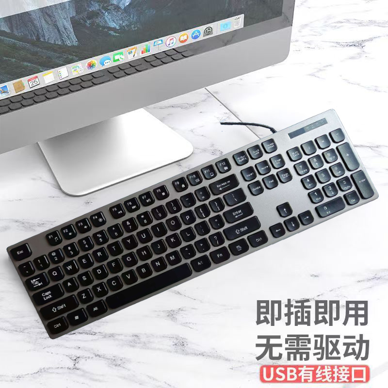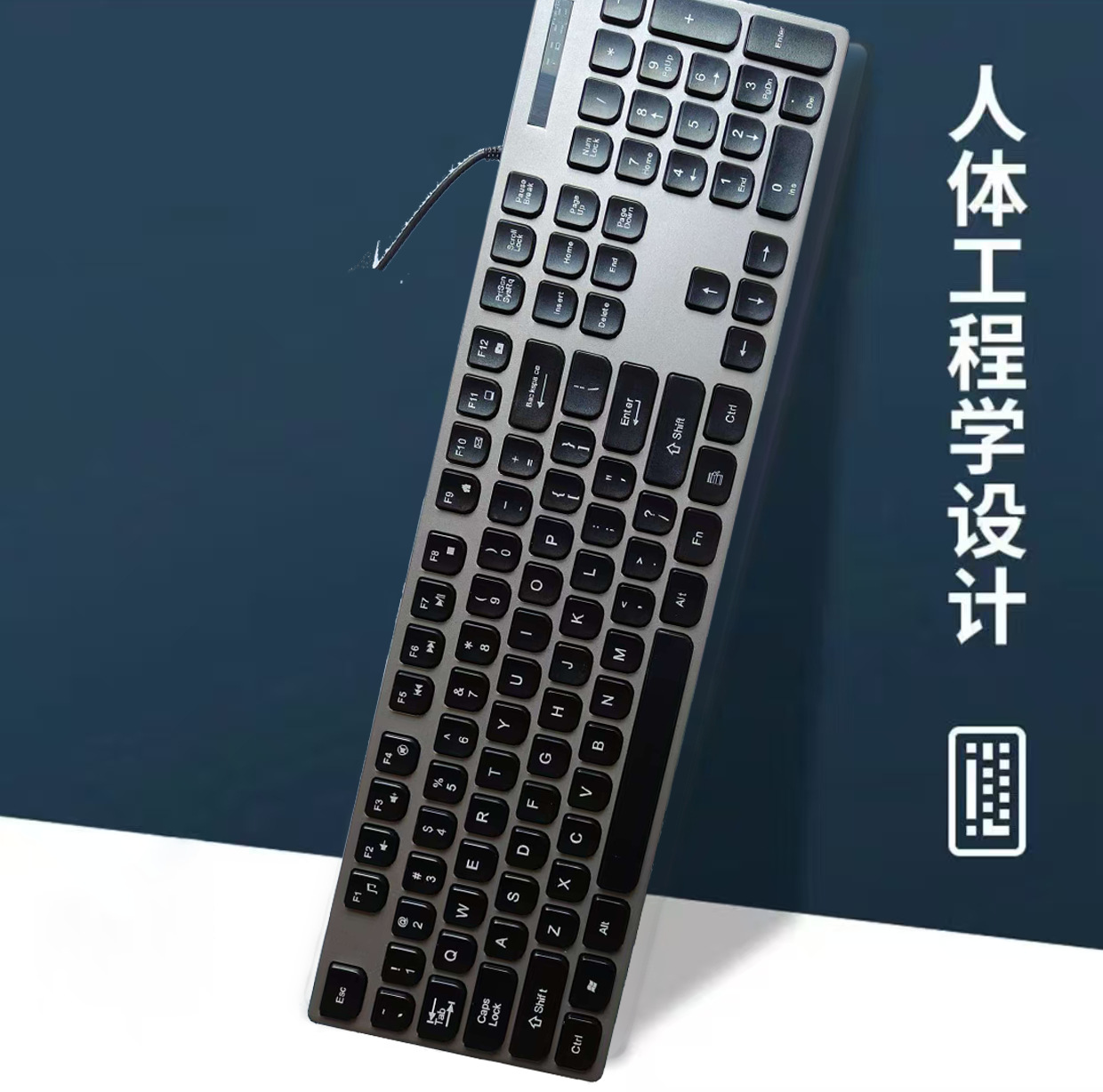 새로운 실버 블랙 유선 필름형 저소음 사무용 타이핑 키보드 노트북 데스크탑 겸용 키보드 도매