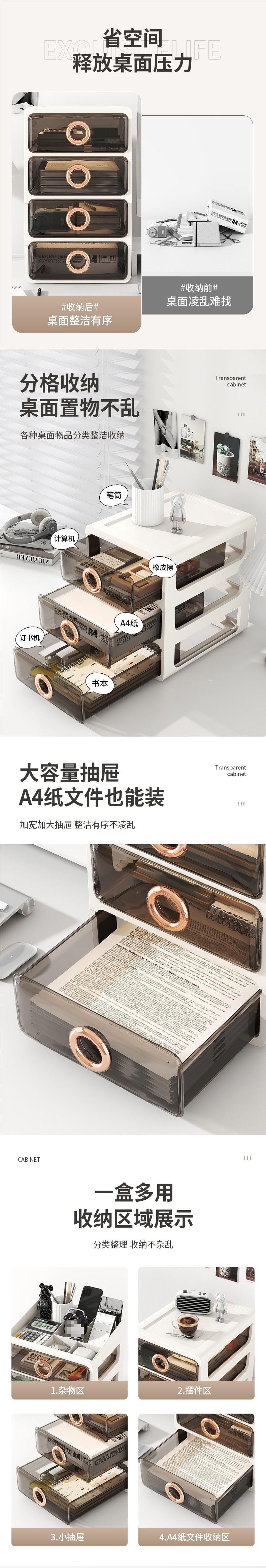 서랍형 투명 데스크탑 수납함 A4 파일 문구류 수납함 기숙사 책상 책상 정리 수납장