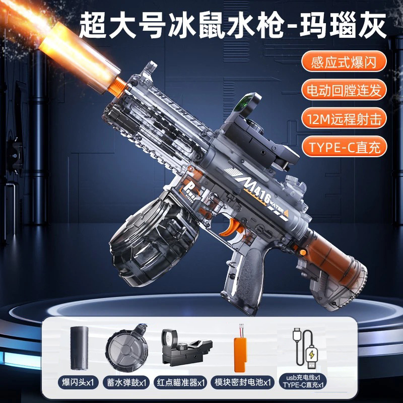 국경 간 불꽃 얼음 쥐 폭발 전기 물총 연속 물 스프레이 장거리 물총 어린이 장난감 물총 제조 업체 도매