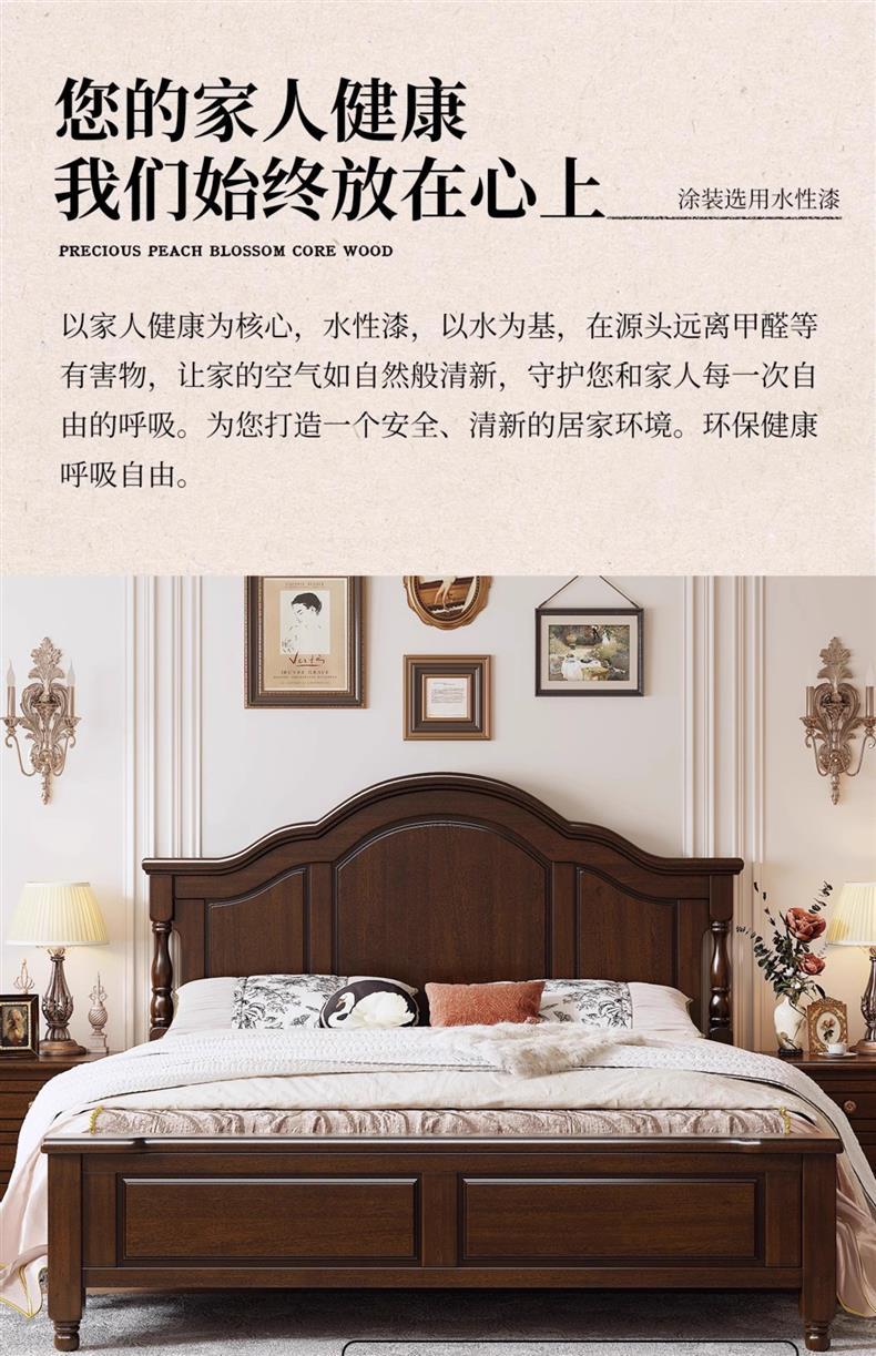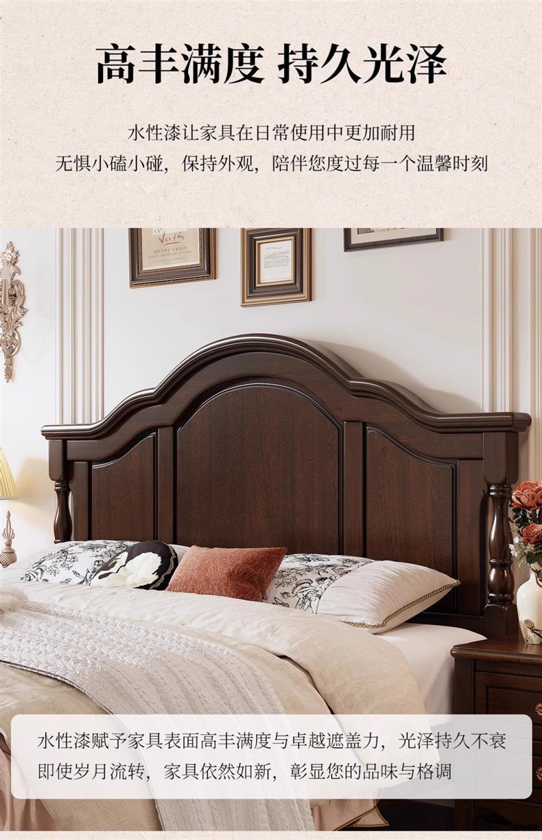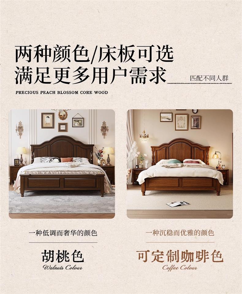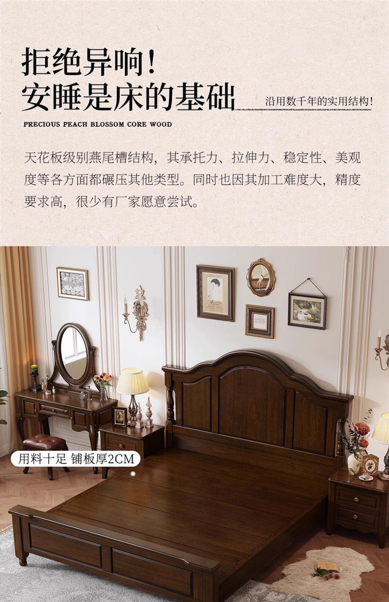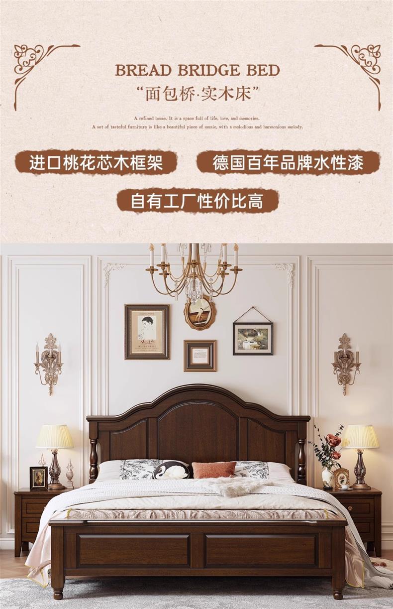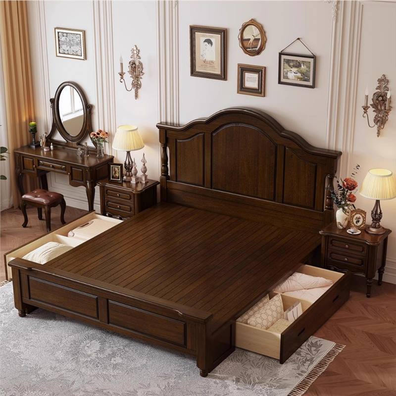 미국식 순수 원목 침대 복고풍 컨트리 1.8m 더블 침대 2m x 2m 대형 침대 마스터 침실 1.5 싱글 빵 브릿지 침대