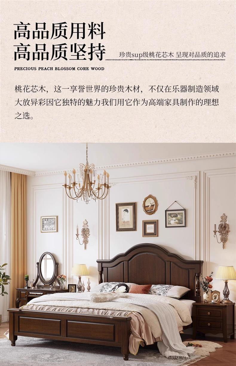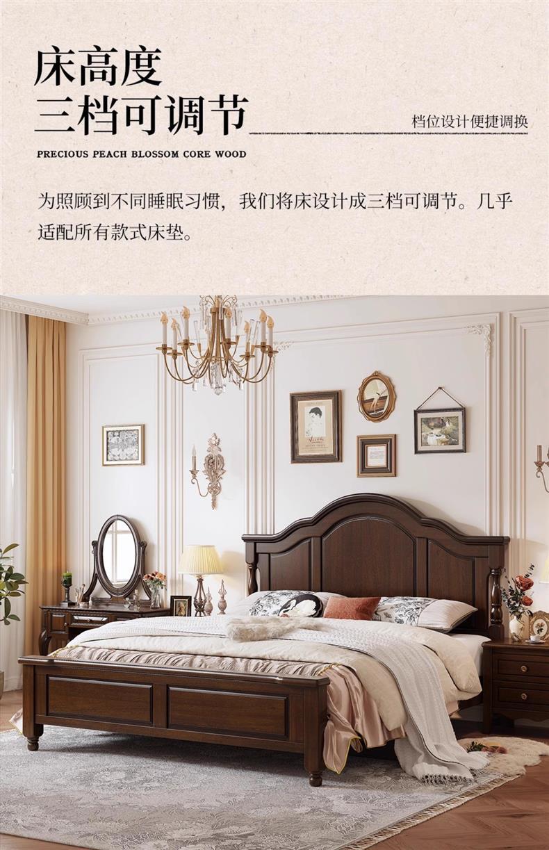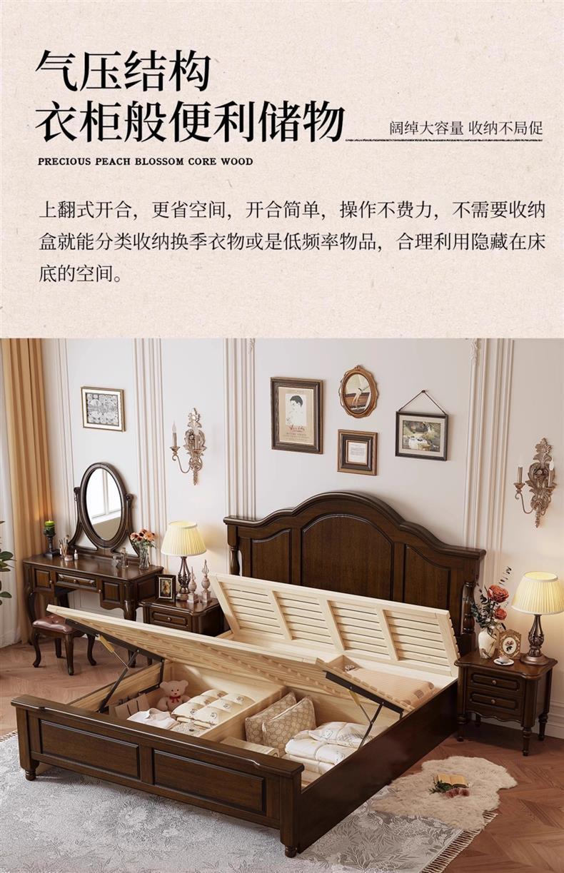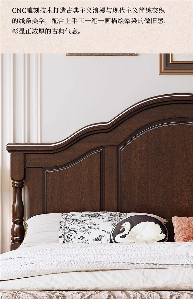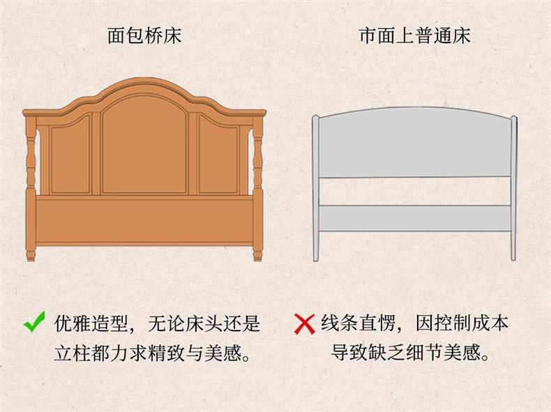 미국식 순수 원목 침대 복고풍 컨트리 1.8m 더블 침대 2m x 2m 대형 침대 마스터 침실 1.5 싱글 빵 브릿지 침대