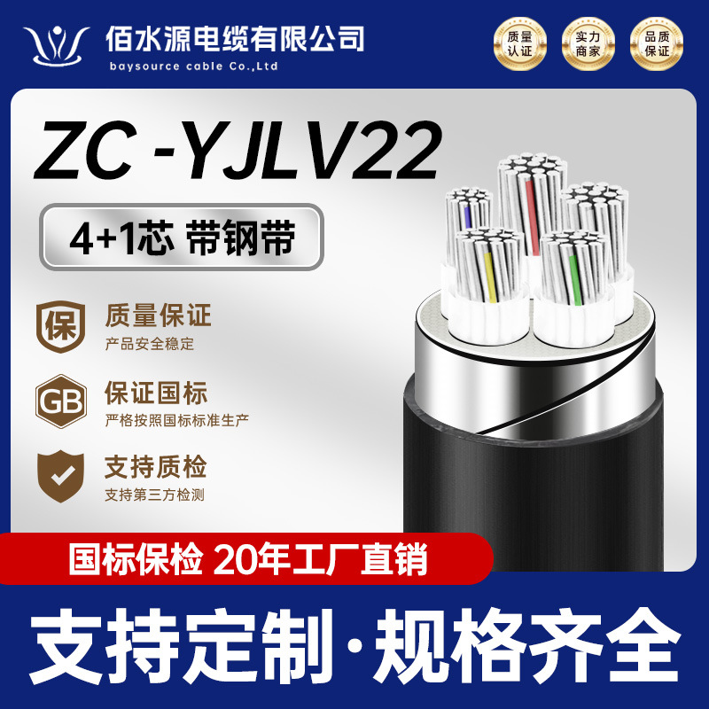 ZC-YJLV22 국가 표준 장갑 순수 알루미늄 4+1 코어 멀티 스트랜드 0.6-1KV 무산소 알루미늄 케이블 난연성 전선 및 케이블스토어 가기