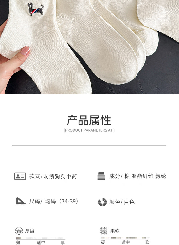 강아지 양말, 여성용 봄 여름 면 양말, 컬링 미드 종아리 양말, 귀여운 만화 자수 양말, 다용도 긴 양말스토어 가기