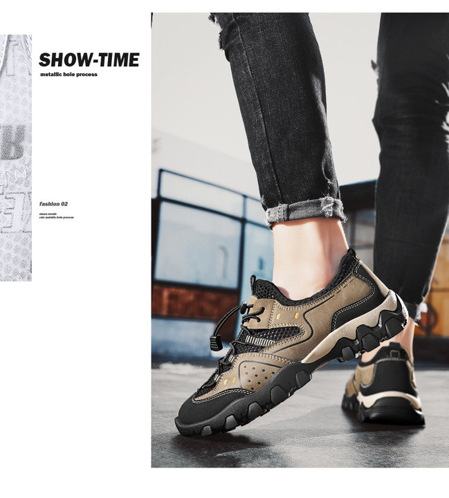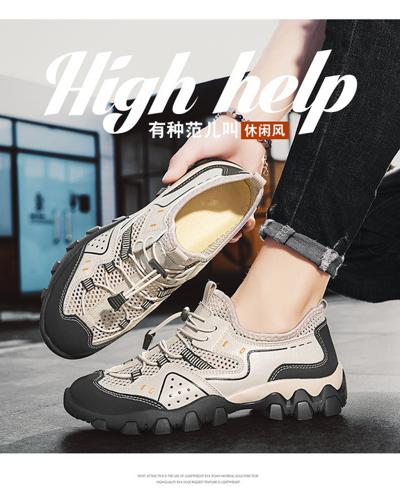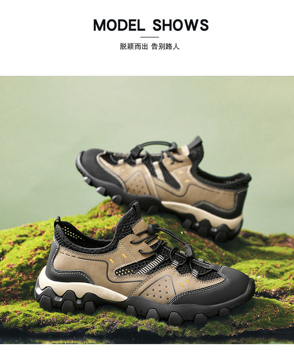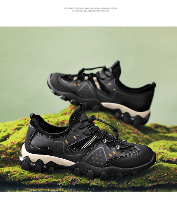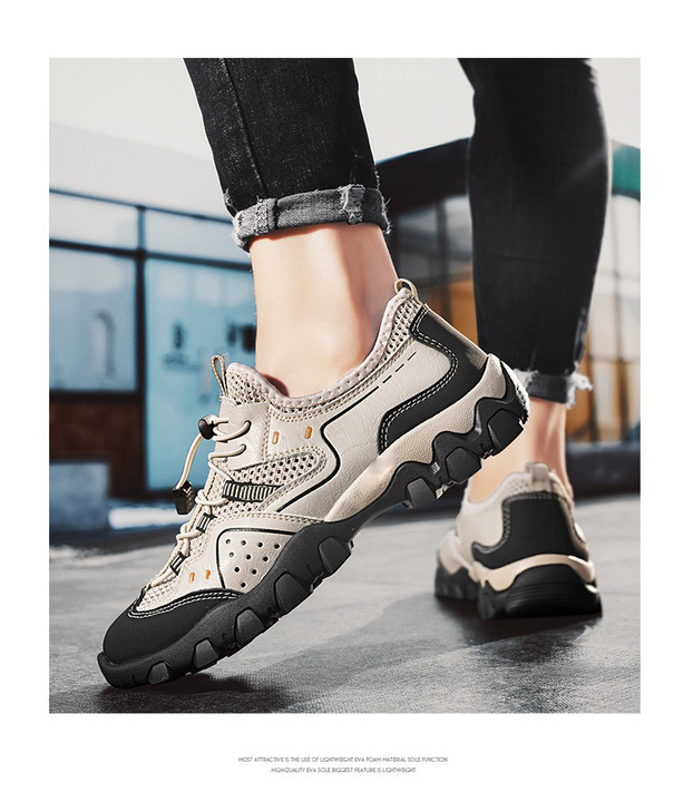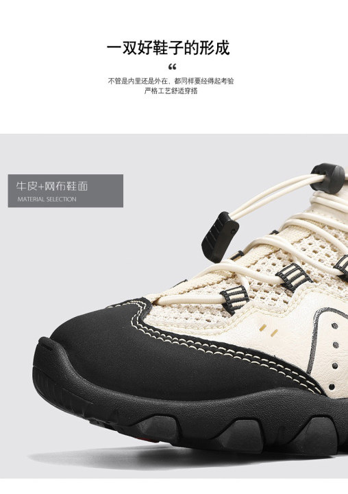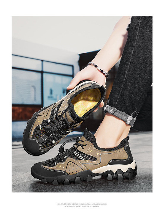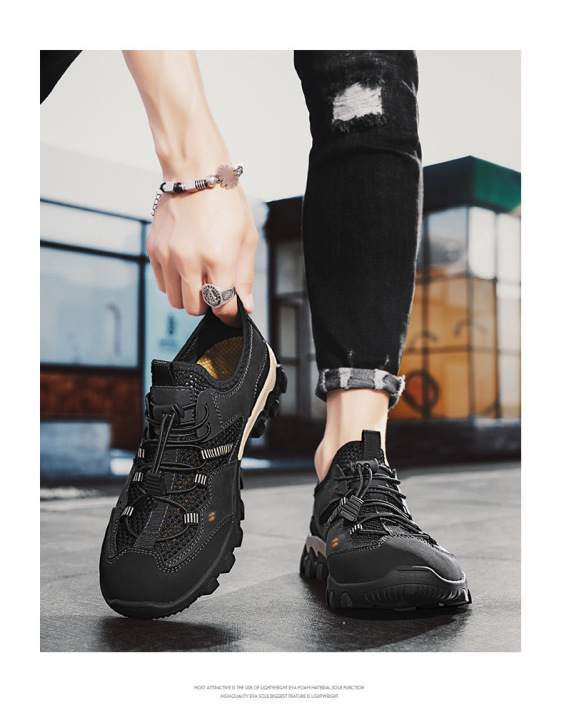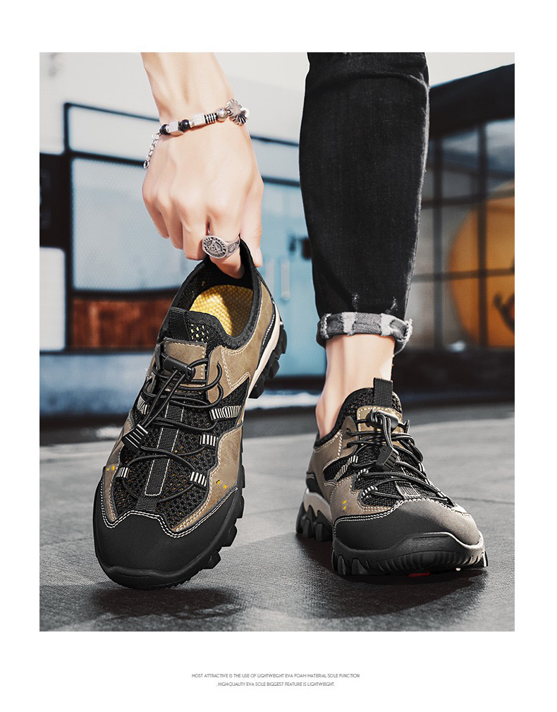 남성 신발 2025 해외배송 여름 통기성 메쉬 슈즈 스티치 디테일 남성 등산화 하이킹화 메쉬 신발 도매 트렌드