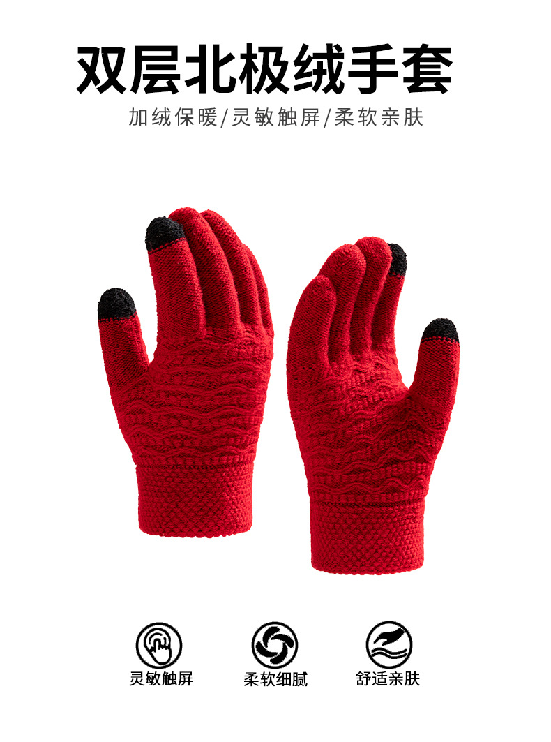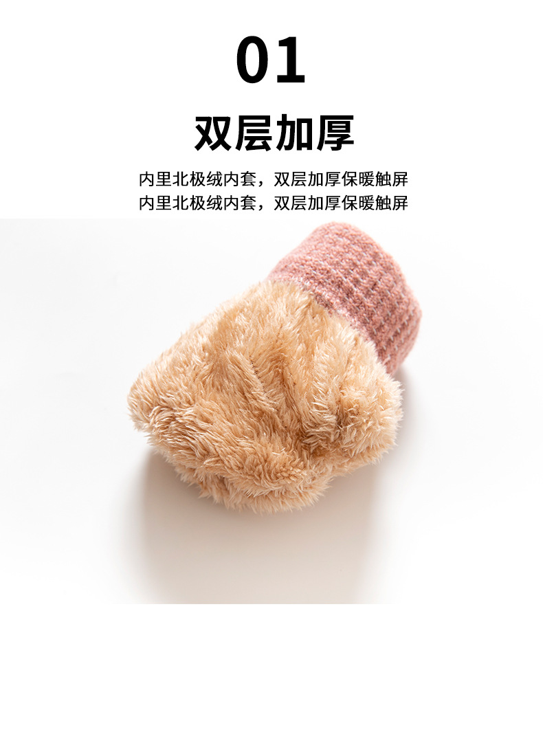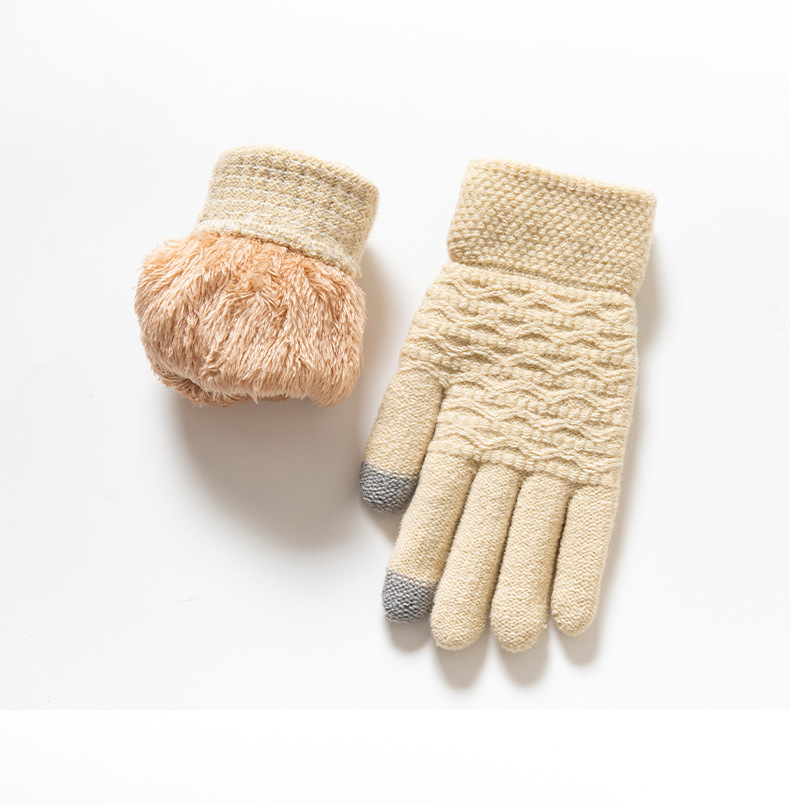 겨울철 남성과 여성을 위한 이중층 두꺼운 장갑, 따뜻하고 벨벳, 방한, 매우 두꺼운 니트 사이클링 터치 스크린 장갑 도매