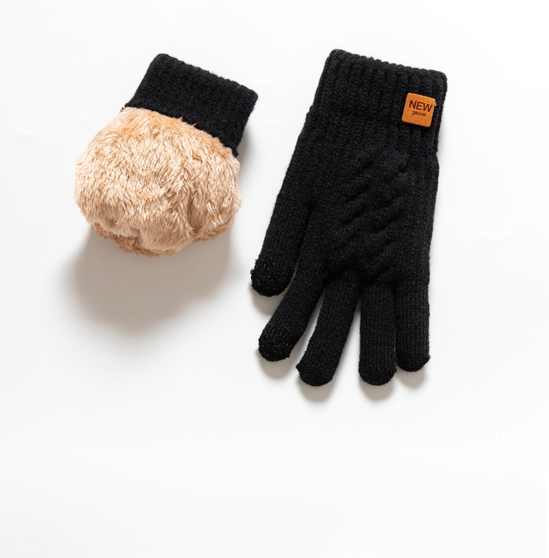 겨울철 남성과 여성을 위한 이중층 두꺼운 장갑, 따뜻하고 벨벳, 방한, 매우 두꺼운 니트 사이클링 터치 스크린 장갑 도매스토어 가기