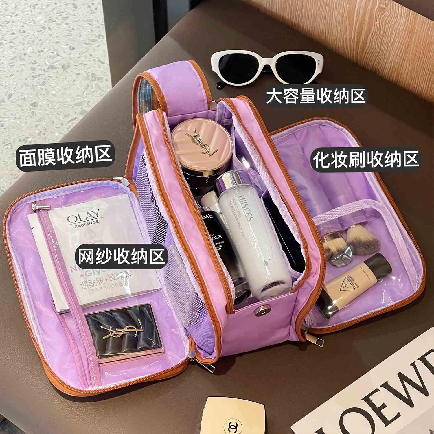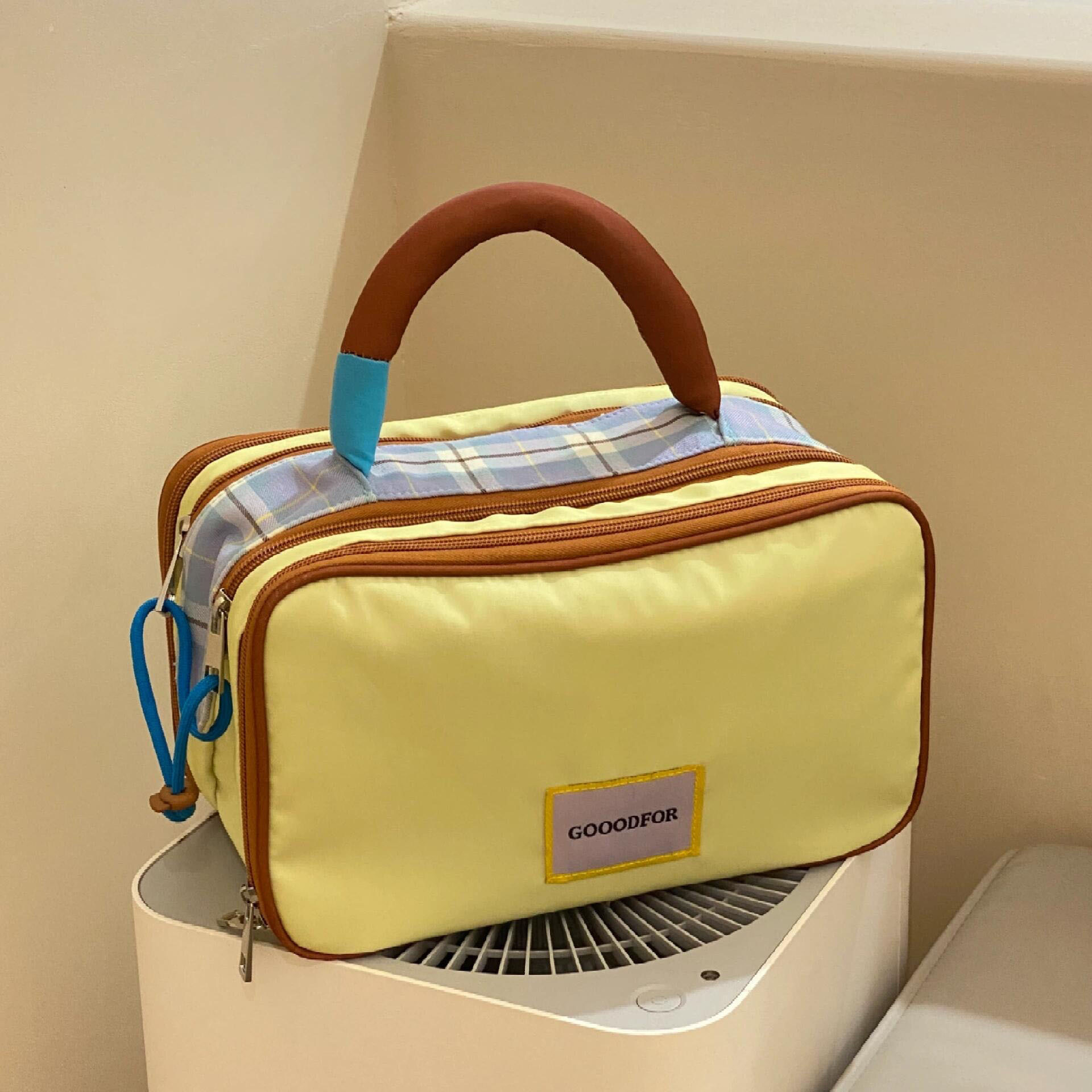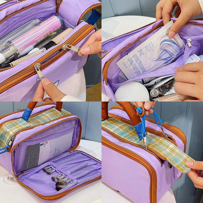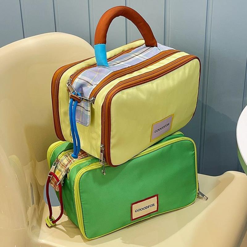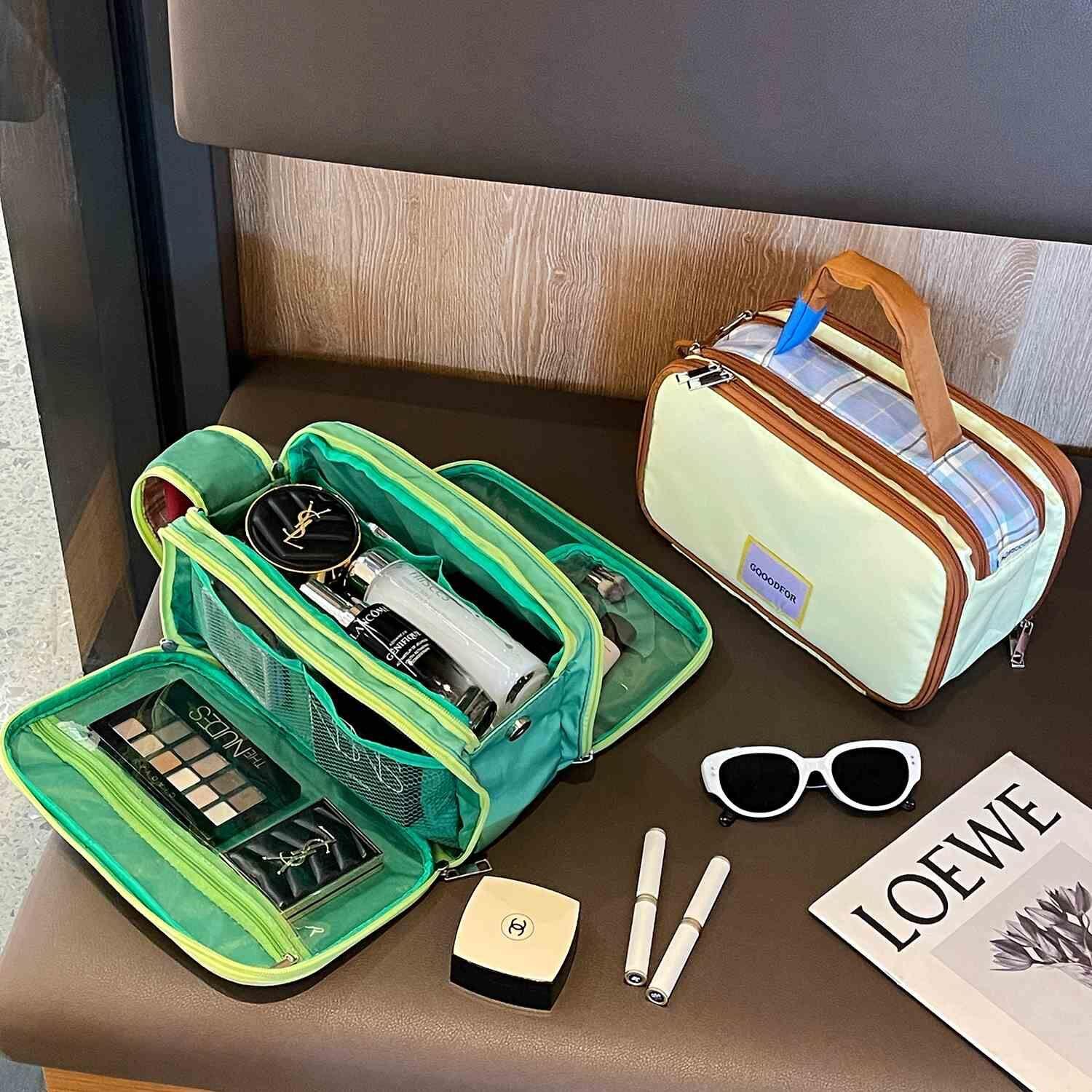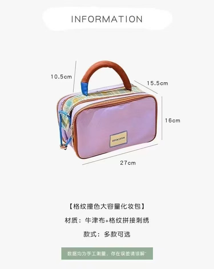 체크무늬 대비색 화장품 가방 대용량 고급 세면도구 가방 휴대용 손가방 수납 화장품 정리 여행용스토어 가기