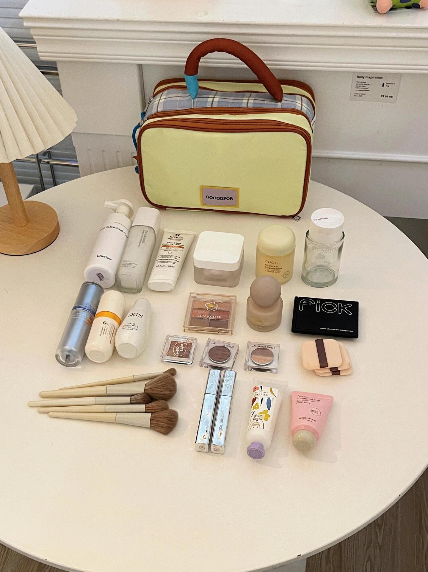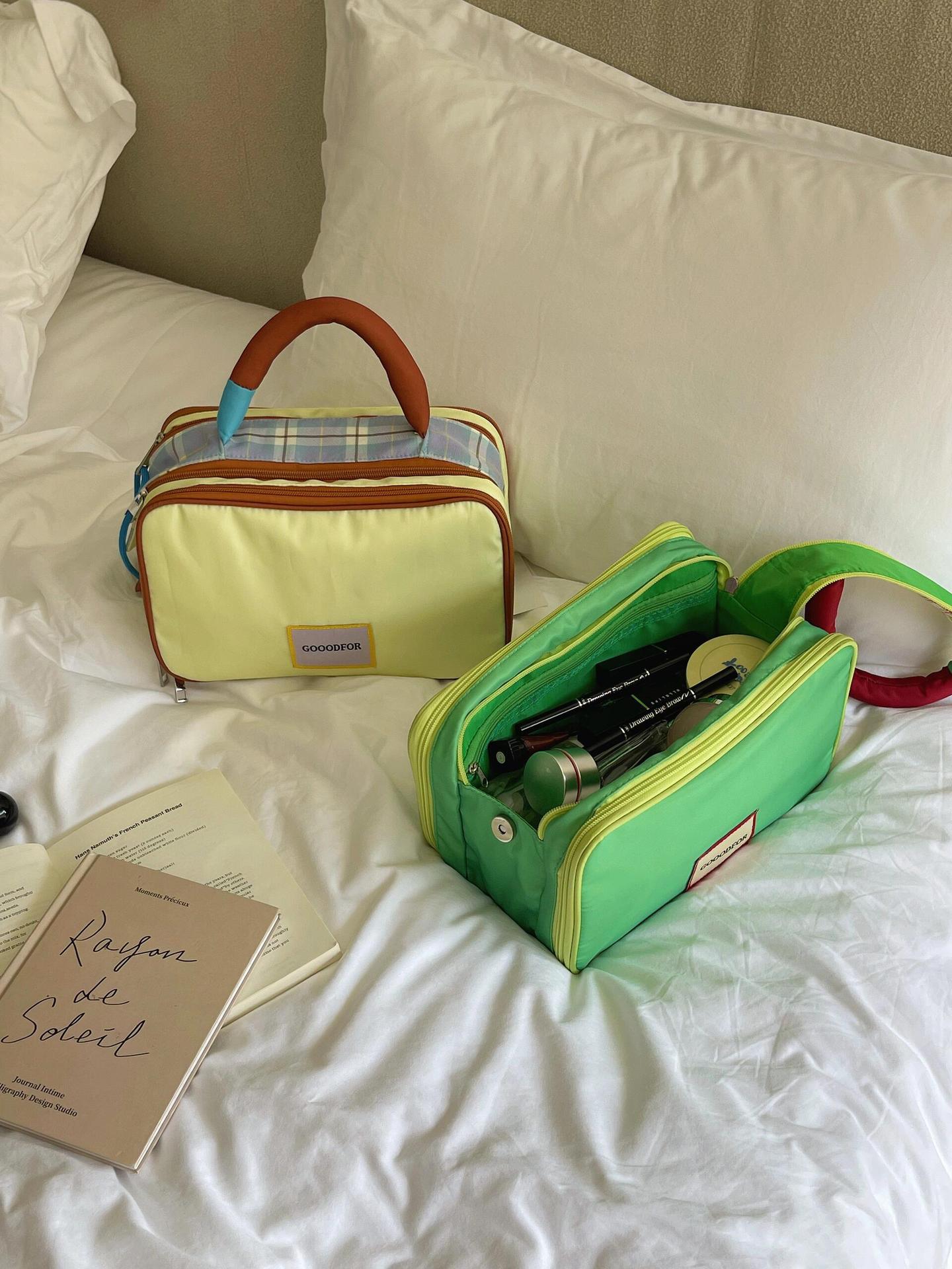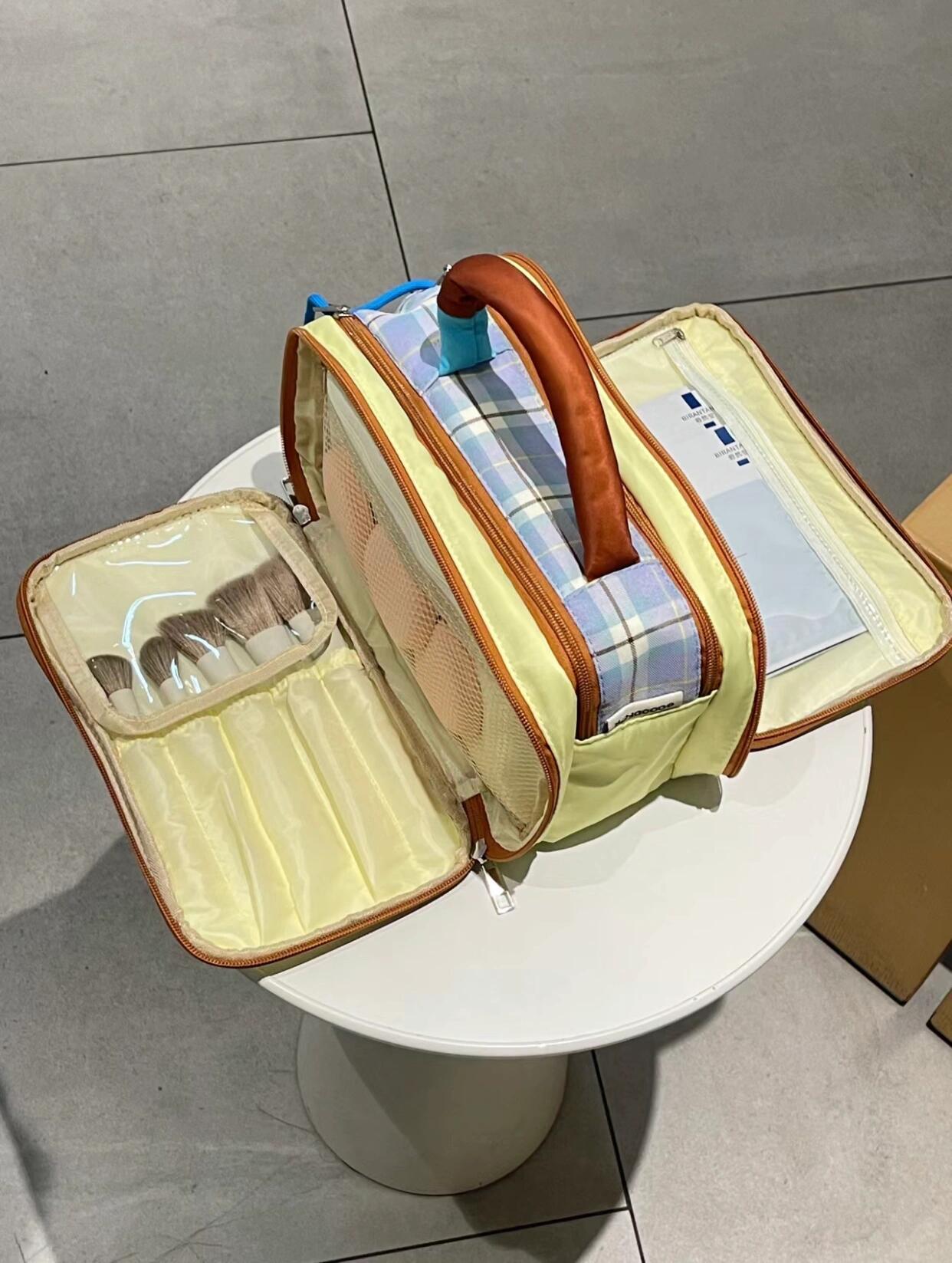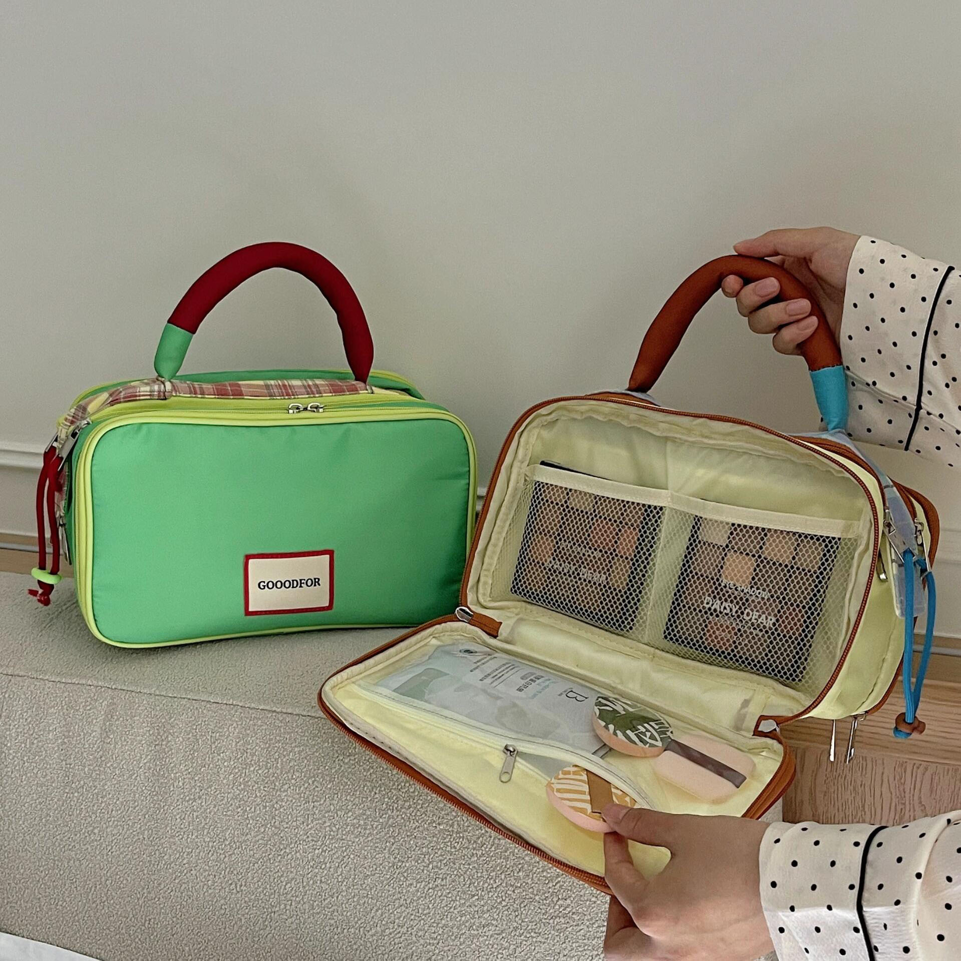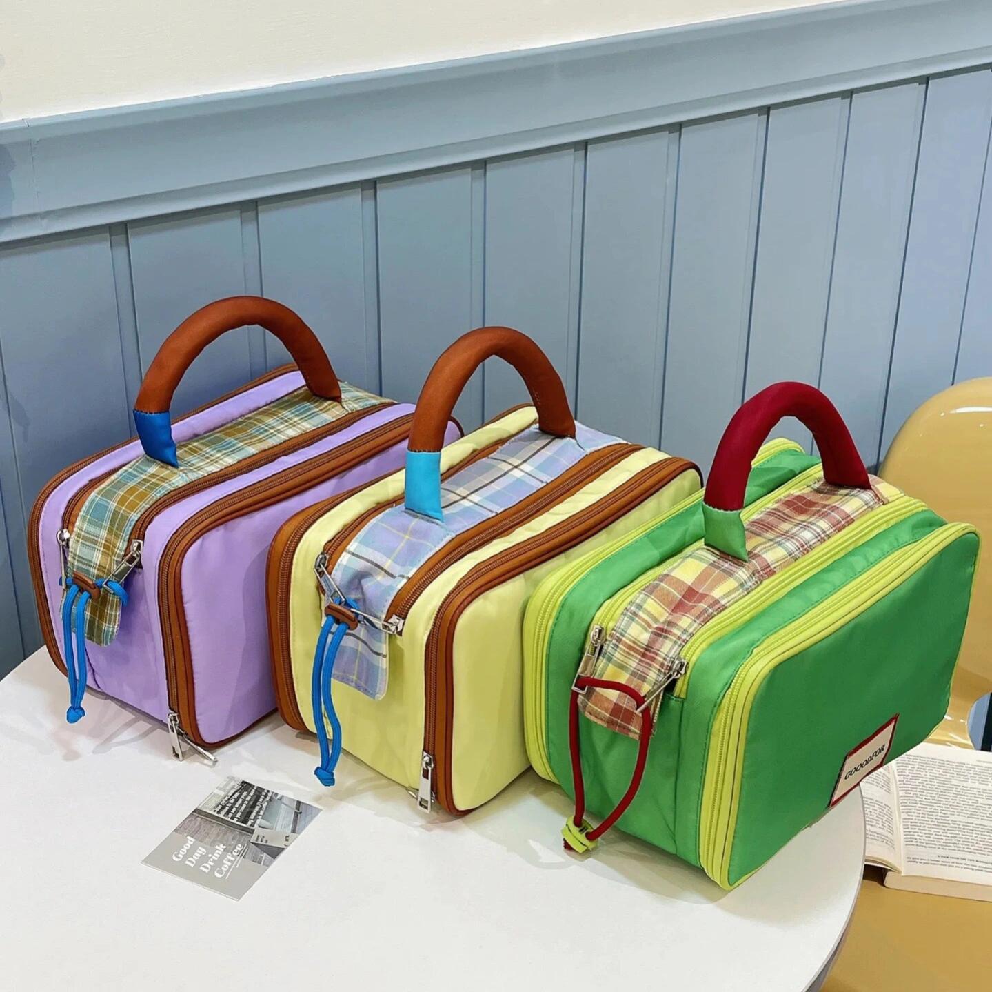 체크무늬 대비색 화장품 가방 대용량 고급 세면도구 가방 휴대용 손가방 수납 화장품 정리 여행용스토어 가기