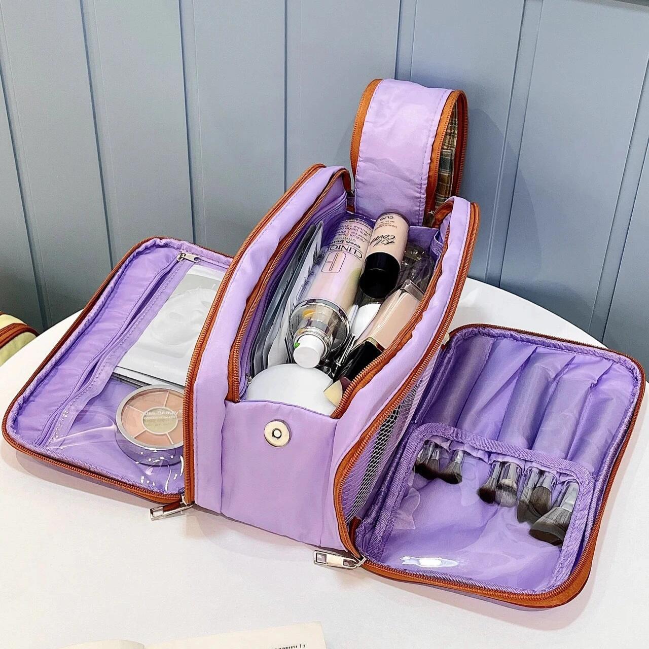 체크무늬 대비색 화장품 가방 대용량 고급 세면도구 가방 휴대용 손가방 수납 화장품 정리 여행용
