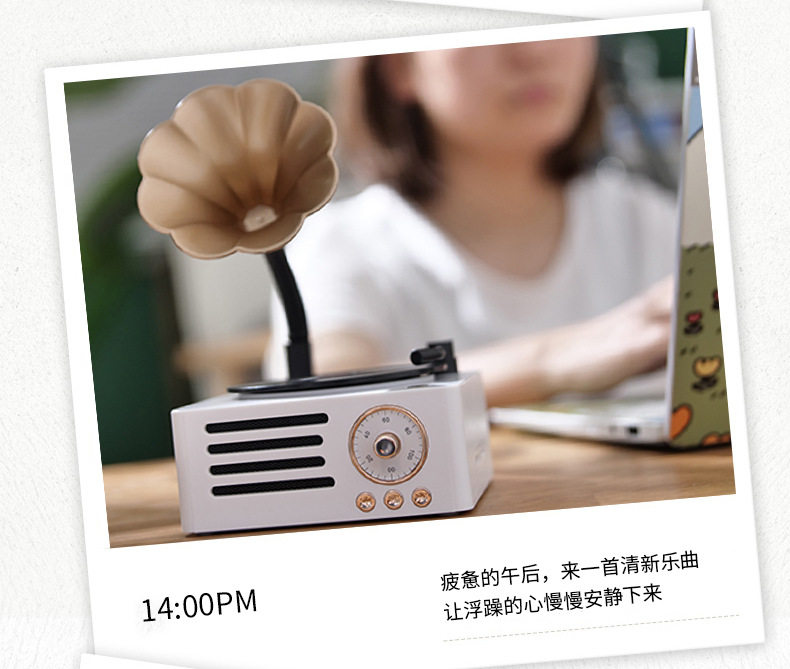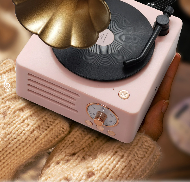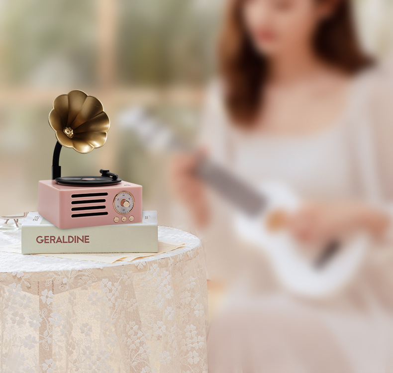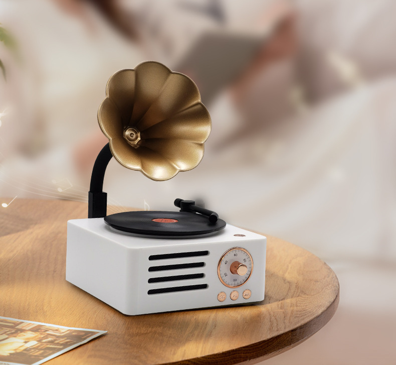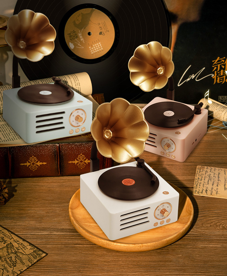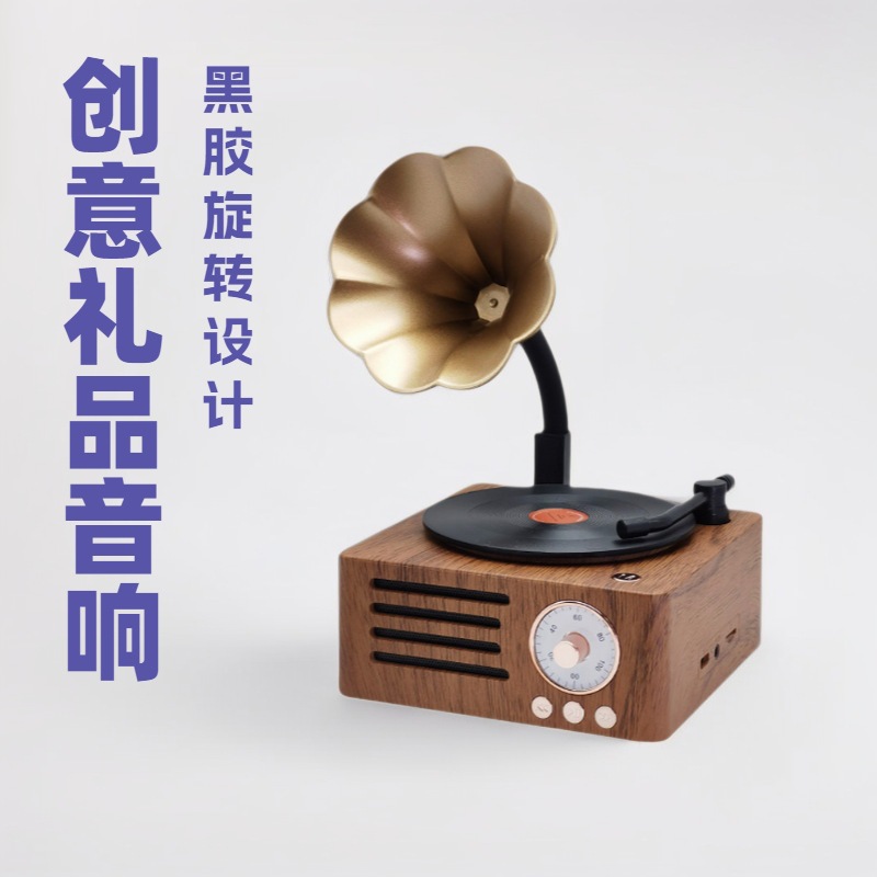 레트로 축음기 회전 블루투스 스피커 나뭇결 나무 스피커 트럼펫 레코드 오디오 소년과 소녀 선물스토어 가기