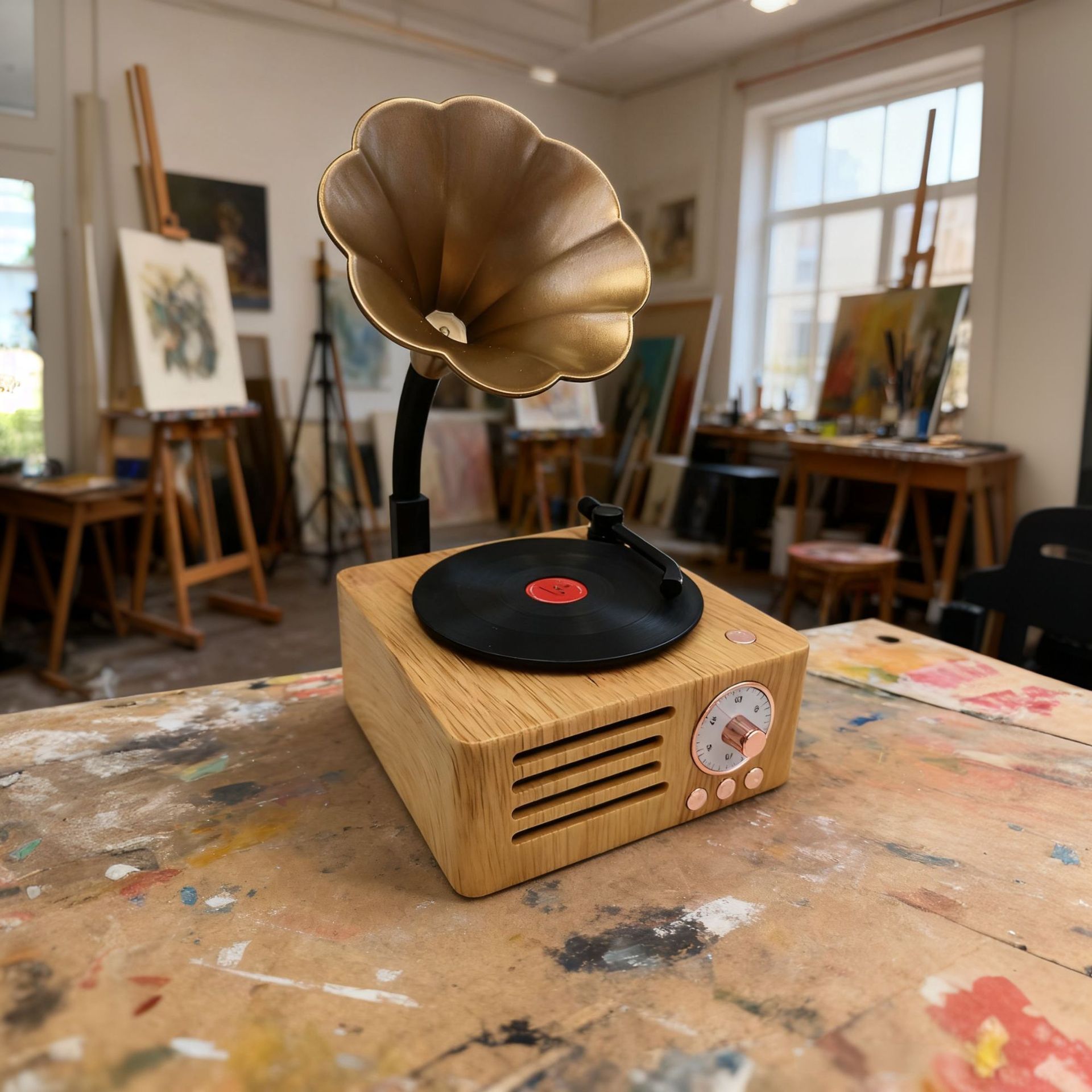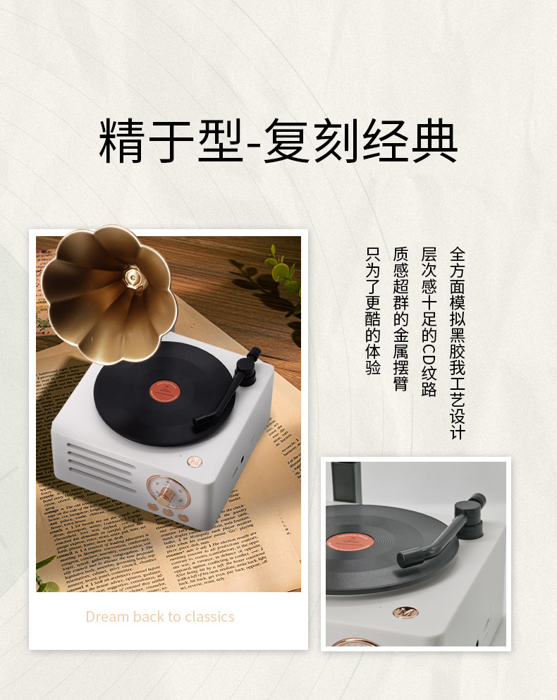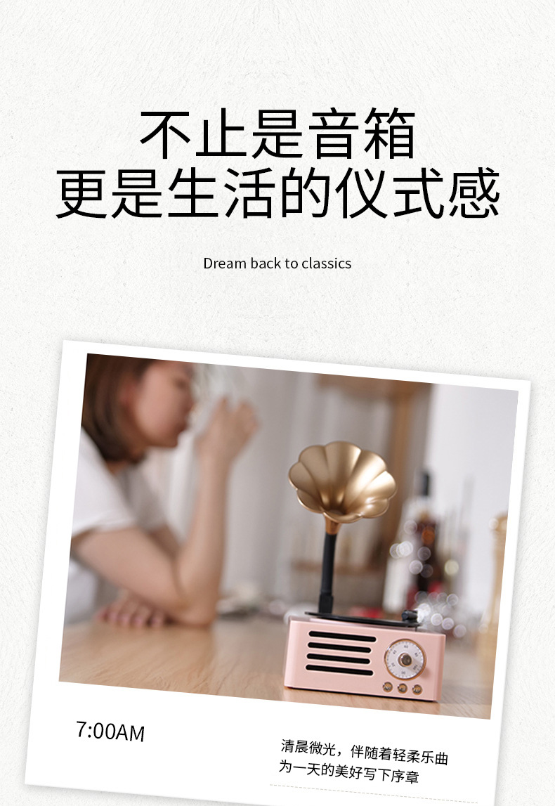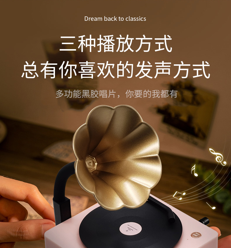 레트로 축음기 회전 블루투스 스피커 나뭇결 나무 스피커 트럼펫 레코드 오디오 소년과 소녀 선물스토어 가기