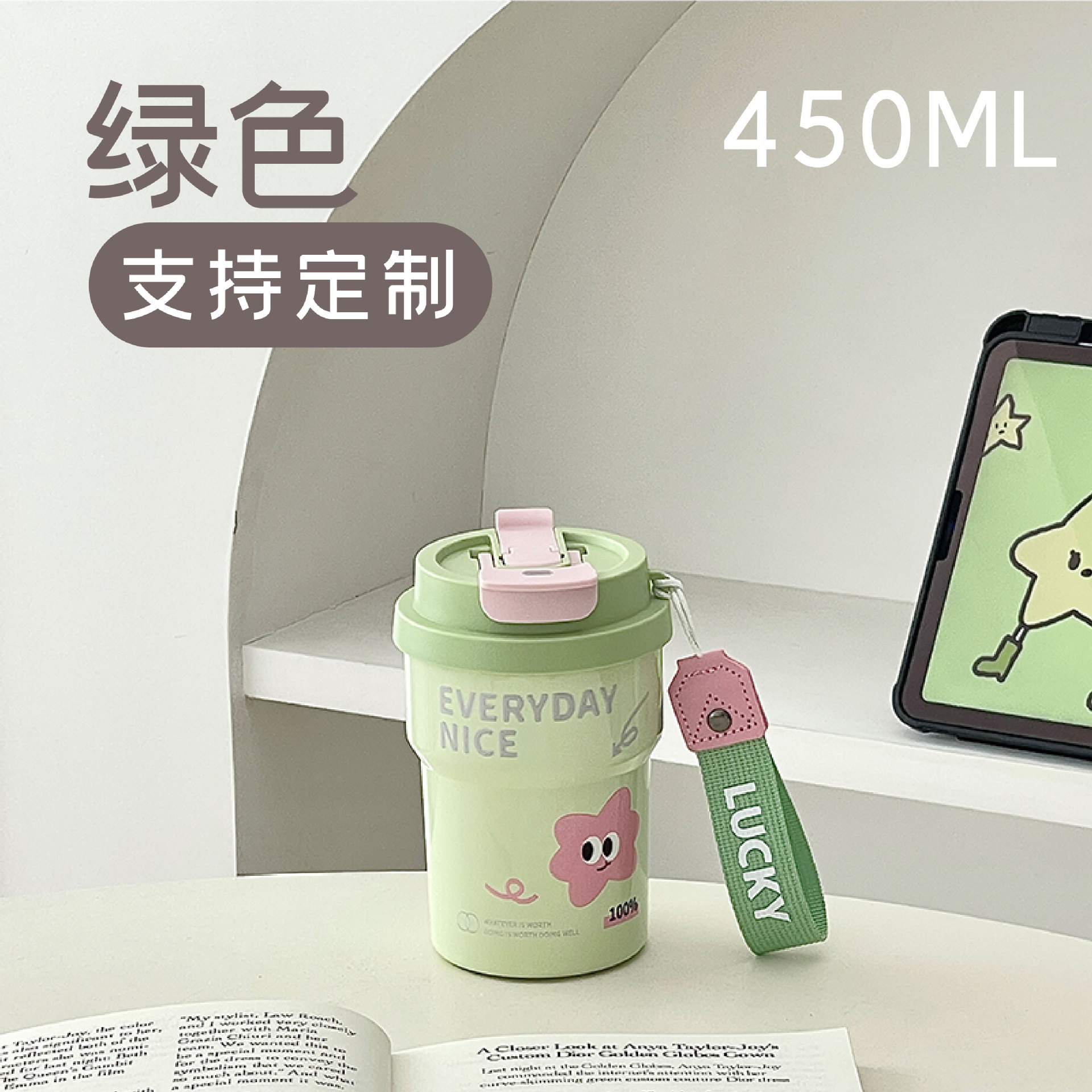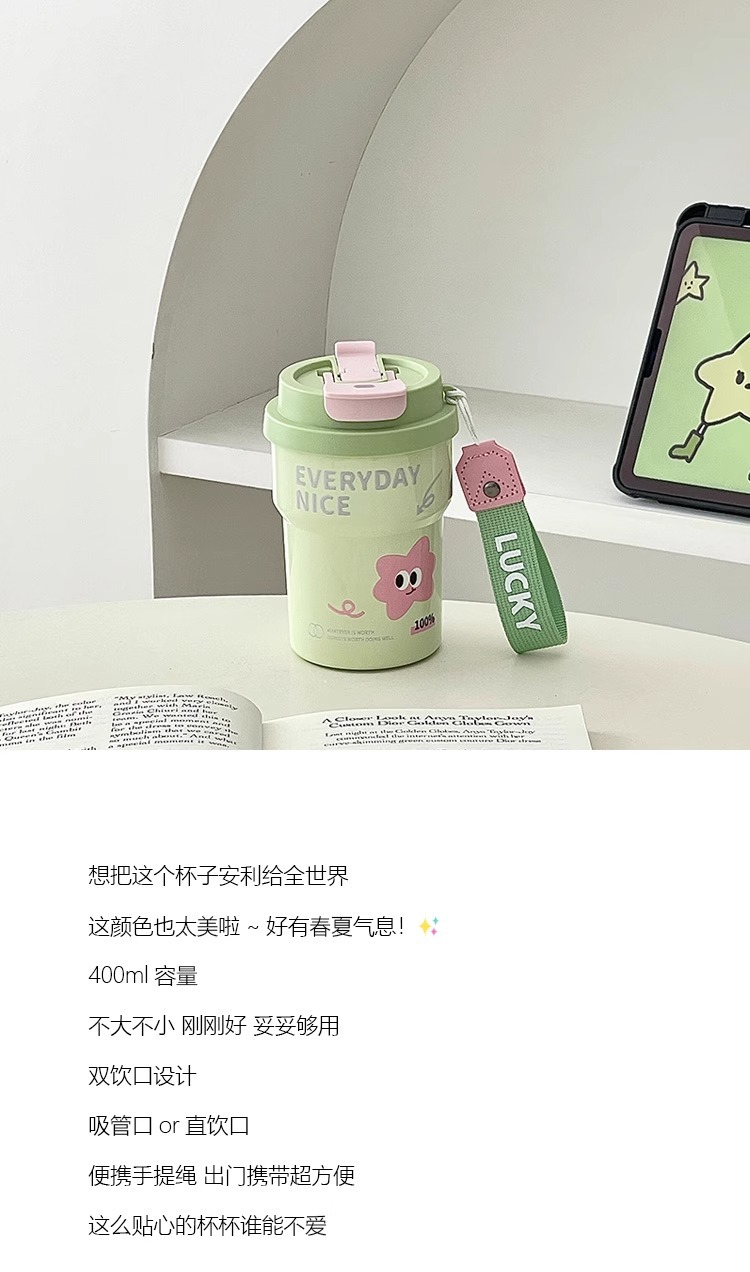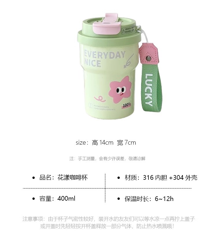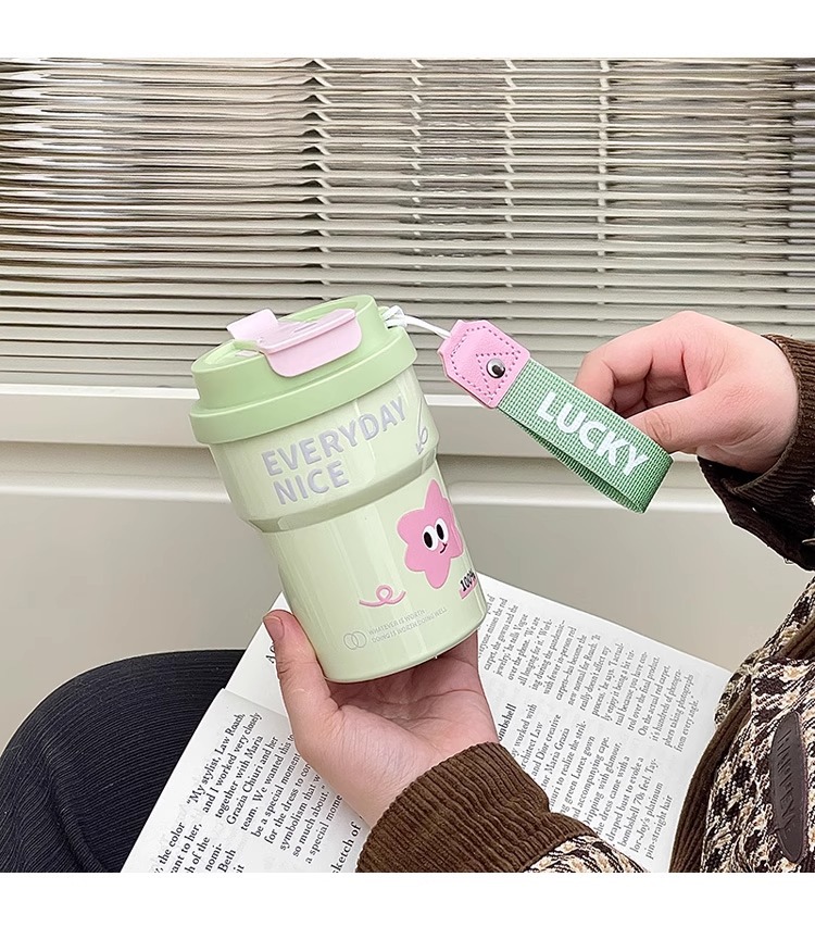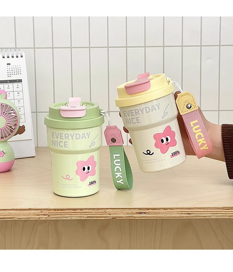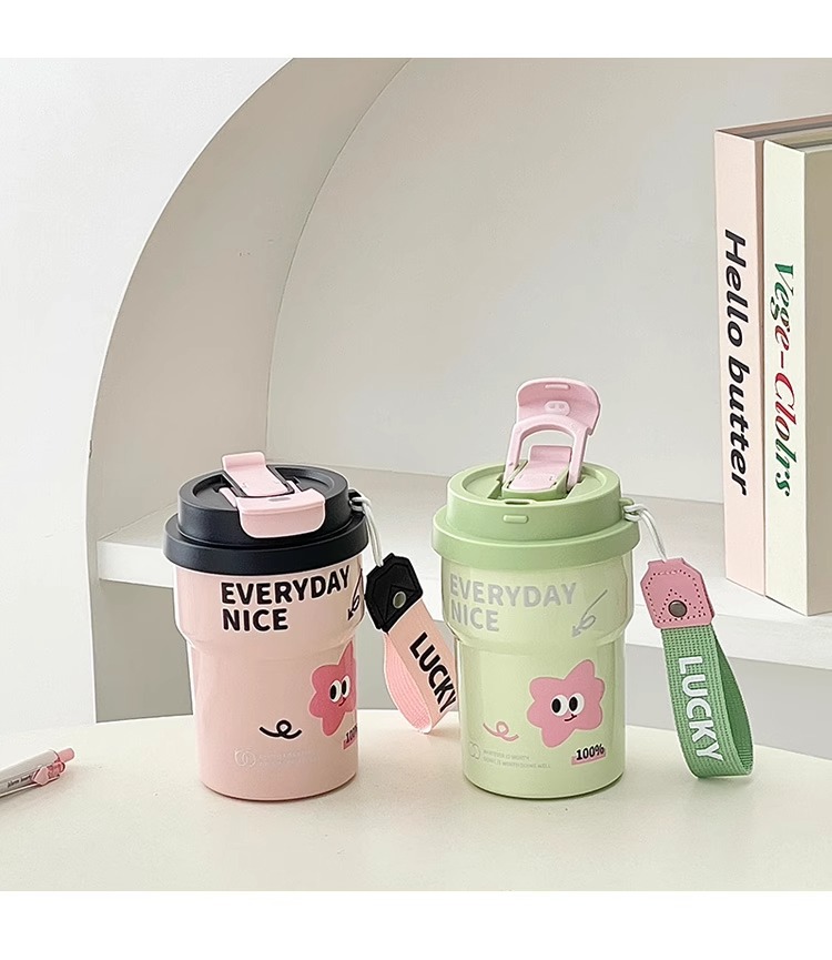 Huayang 커피 컵 316 스테인레스 스틸 만화 보온병 컵 소녀의 멋진 밀짚 컵 편리한 컵스토어 가기
