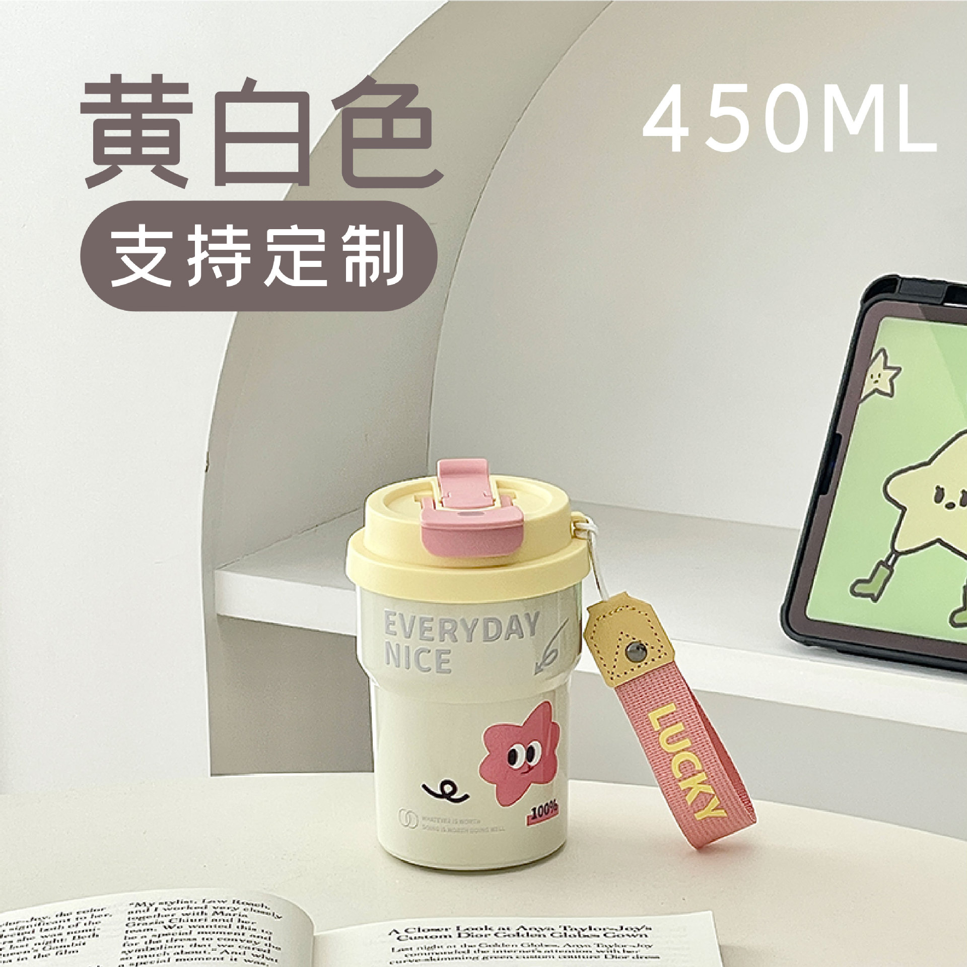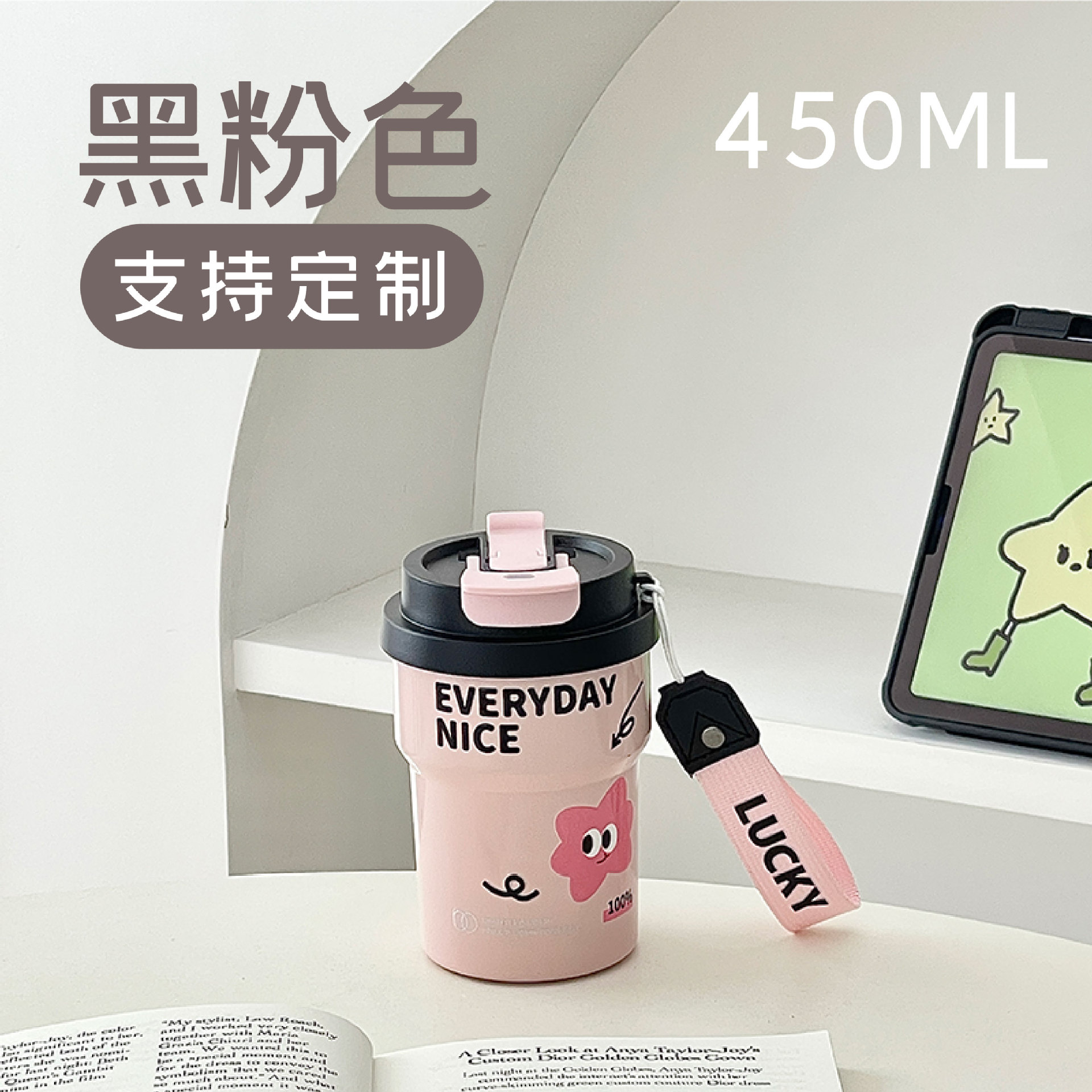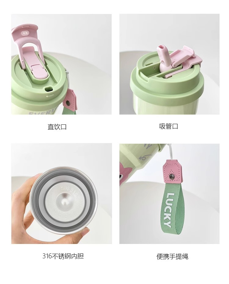Huayang 커피 컵 316 스테인레스 스틸 만화 보온병 컵 소녀의 멋진 밀짚 컵 편리한 컵