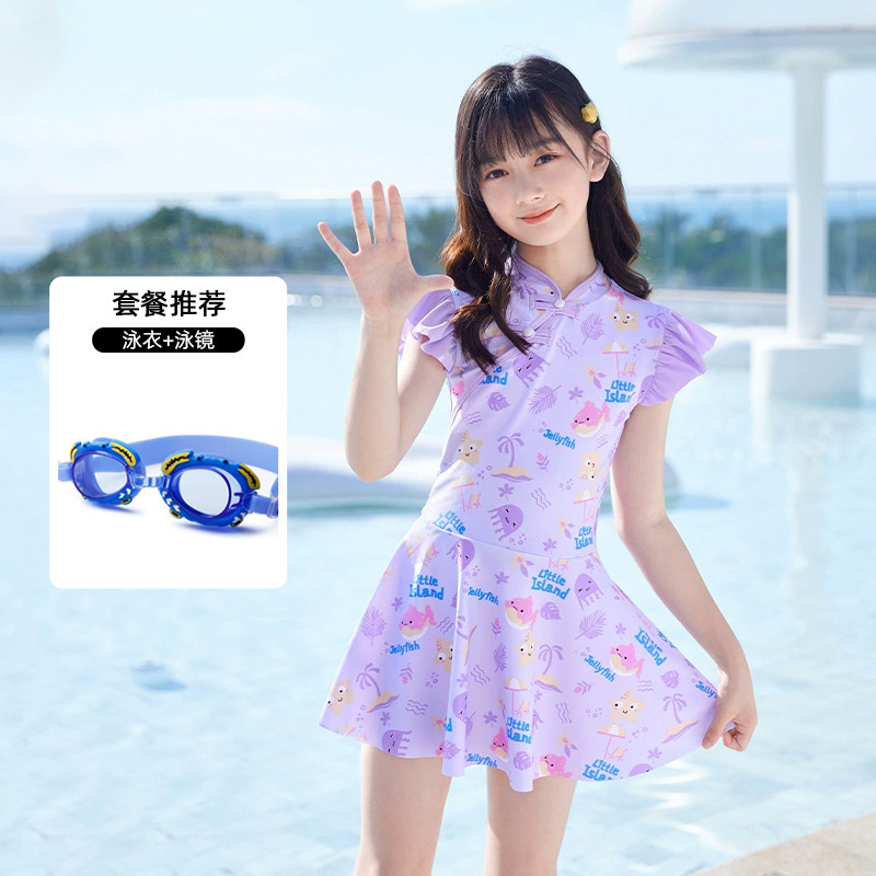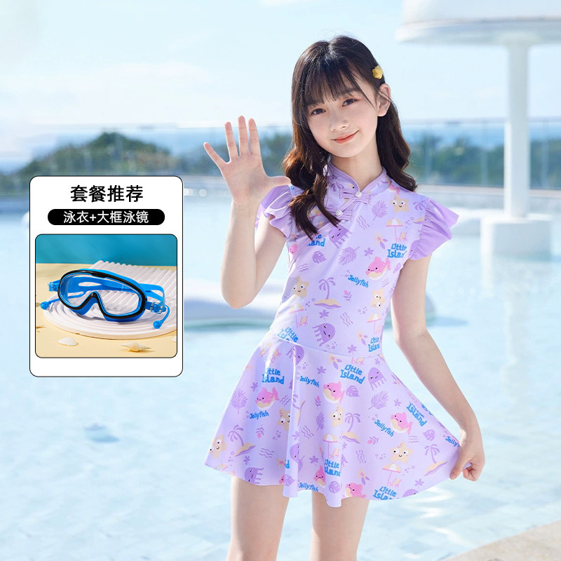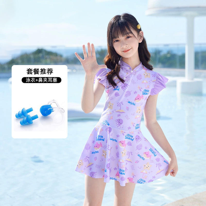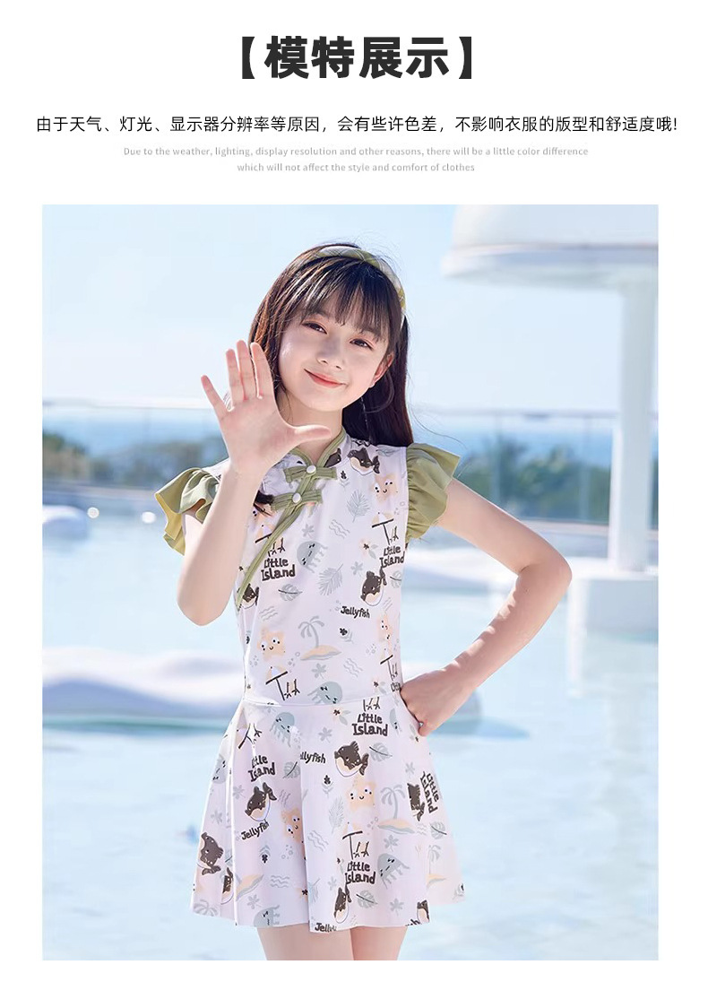 어린이 수영복, 여아 사각팬티, 새로운 여름 스타일, 여아 원피스 중국풍, 중대형 아동용, 귀여운 아기 수영복스토어 가기
