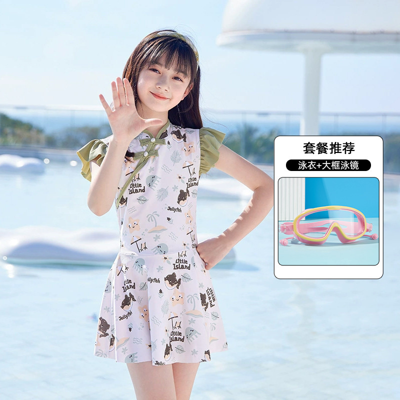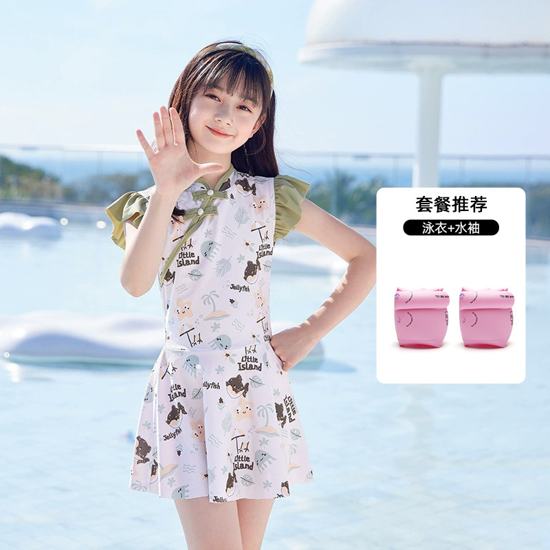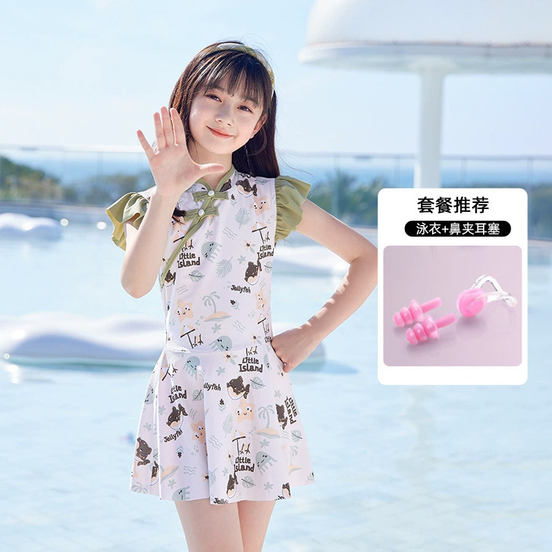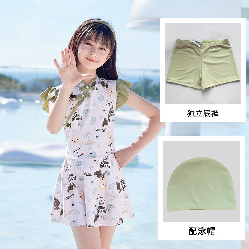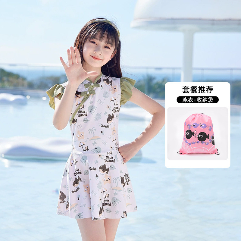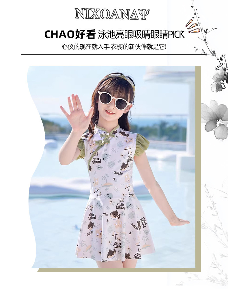 어린이 수영복, 여아 사각팬티, 새로운 여름 스타일, 여아 원피스 중국풍, 중대형 아동용, 귀여운 아기 수영복