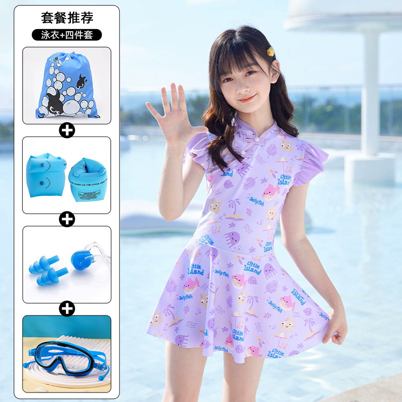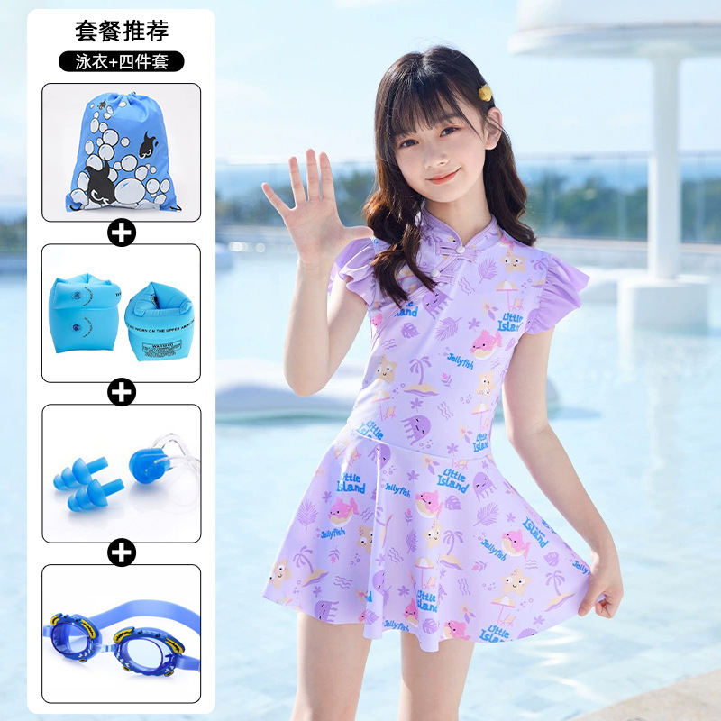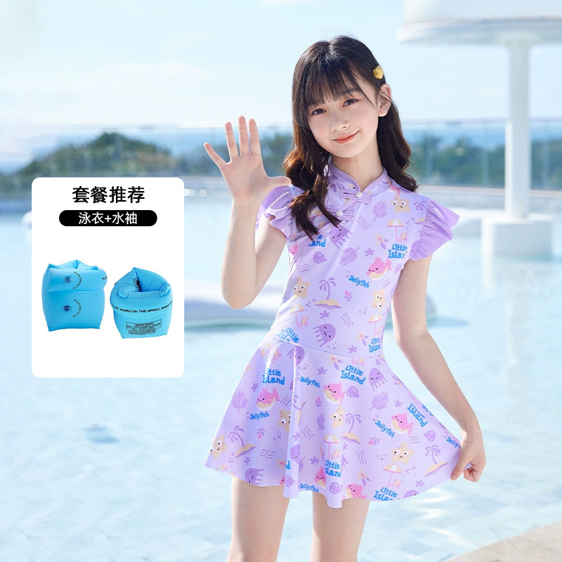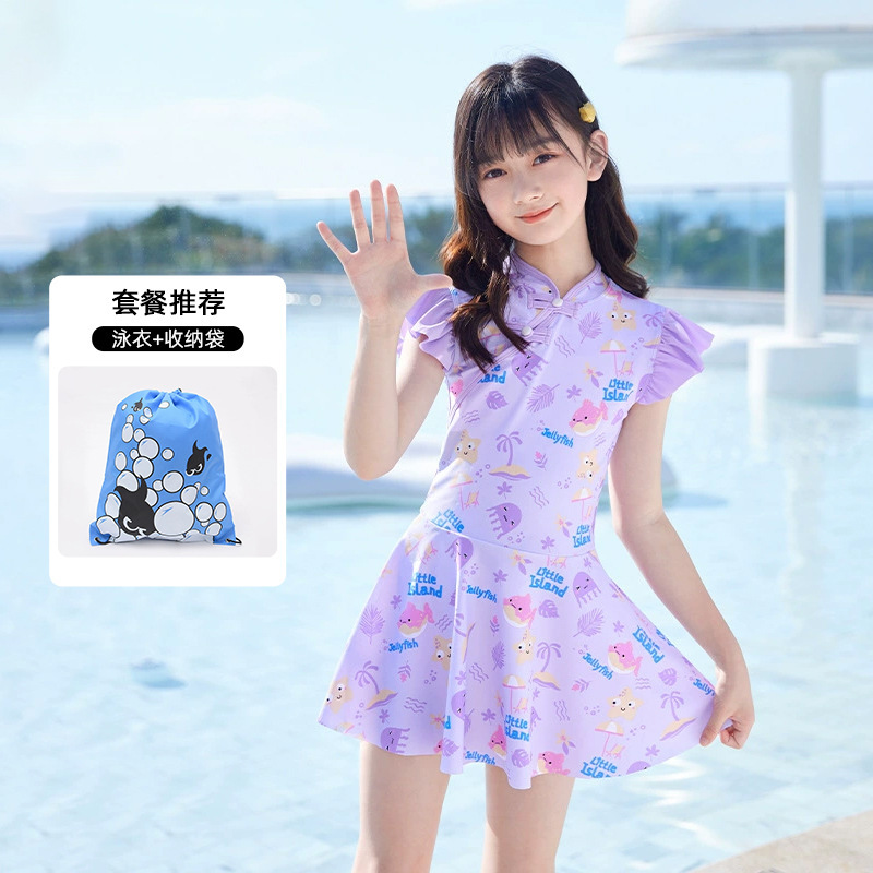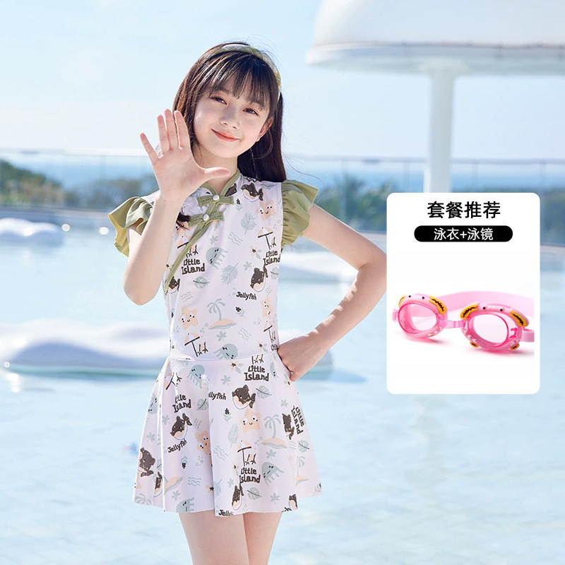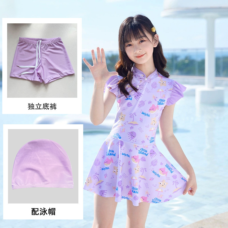 어린이 수영복, 여아 사각팬티, 새로운 여름 스타일, 여아 원피스 중국풍, 중대형 아동용, 귀여운 아기 수영복