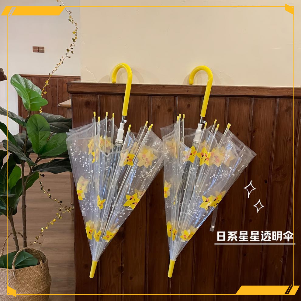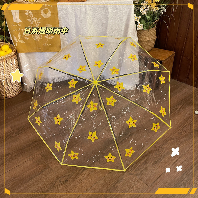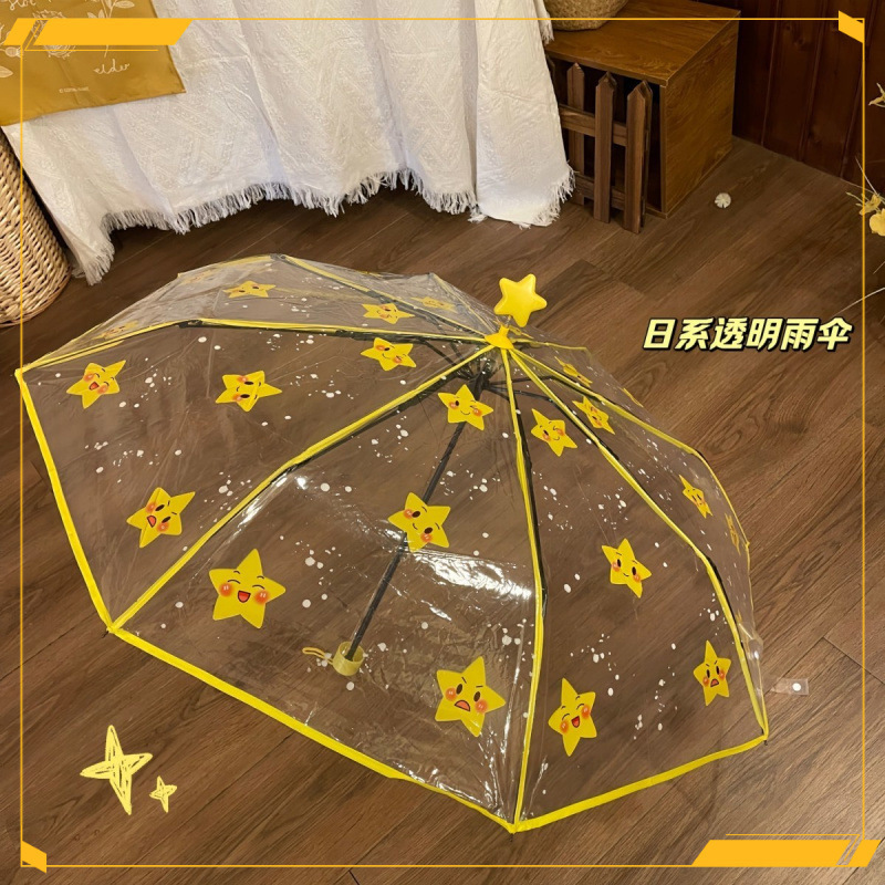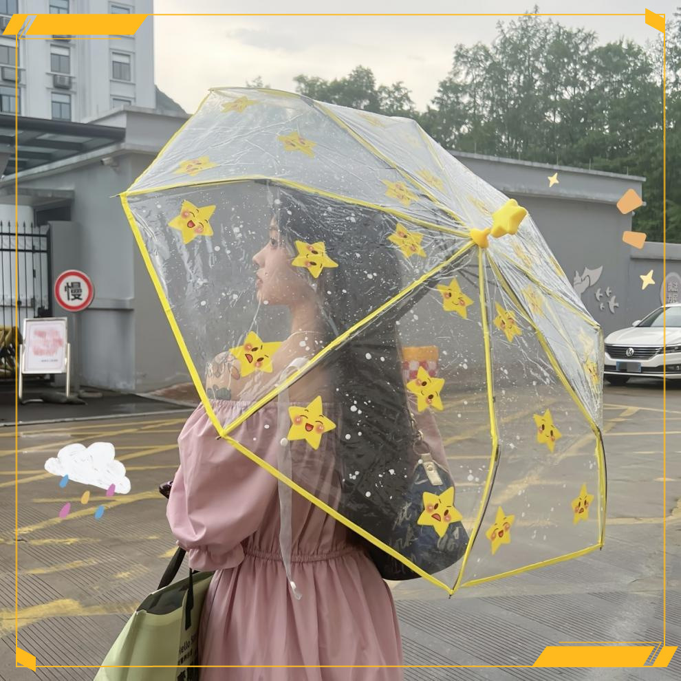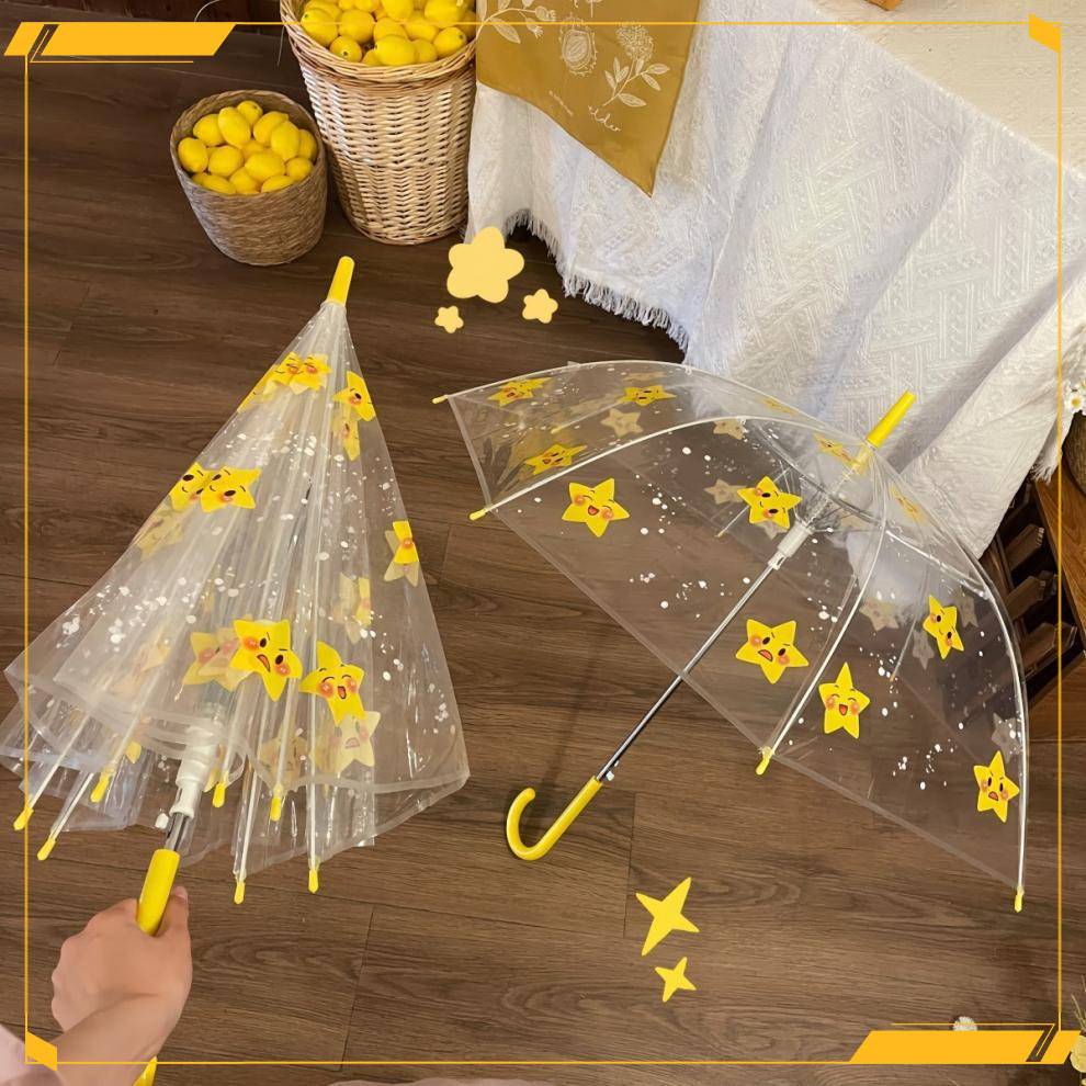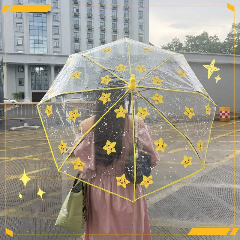 • 노란색 별 수동 투명 우산 - 두꺼운 우산 표면