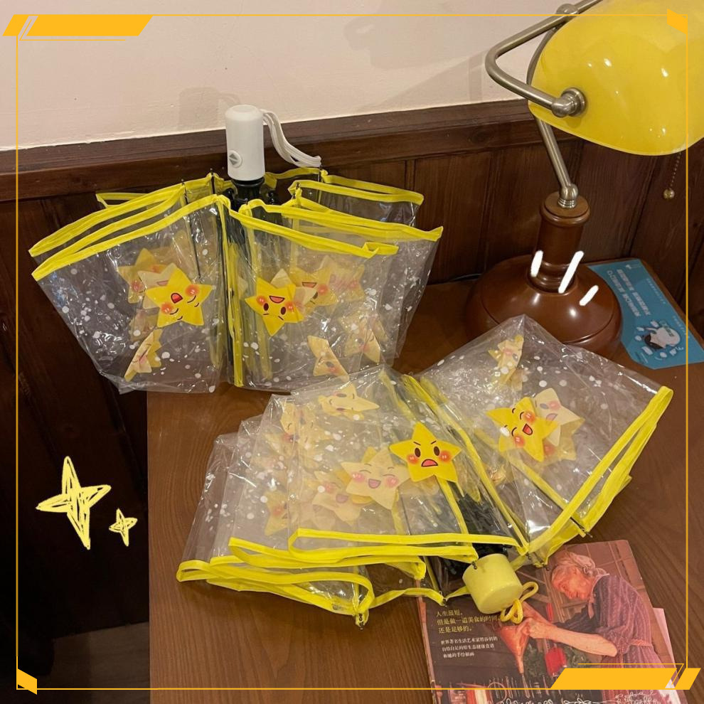 • 노란색 별 자동 투명 우산 - 두꺼운 우산 표면