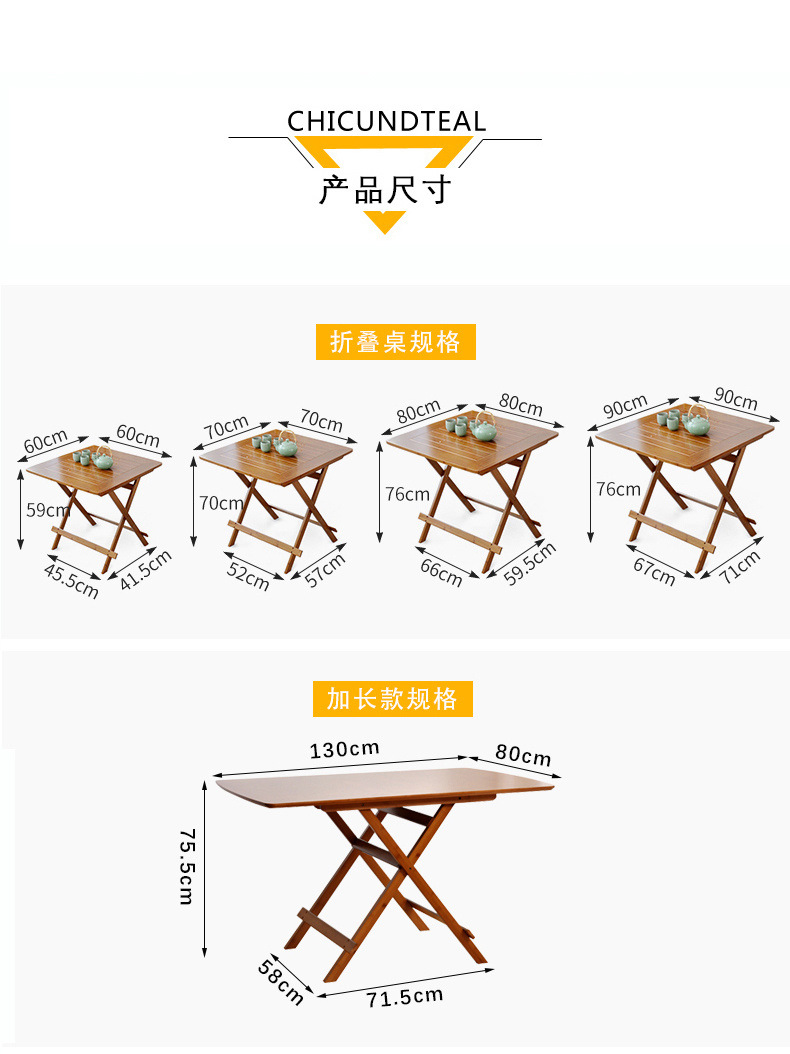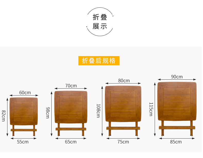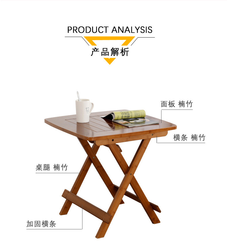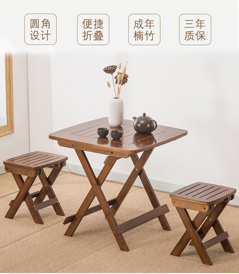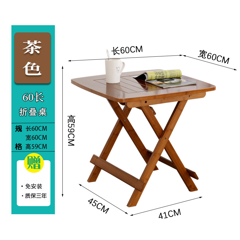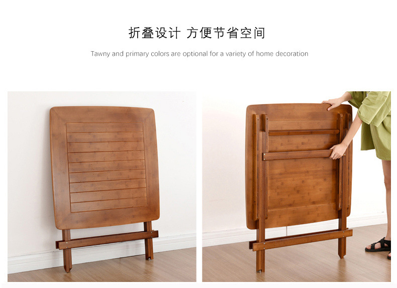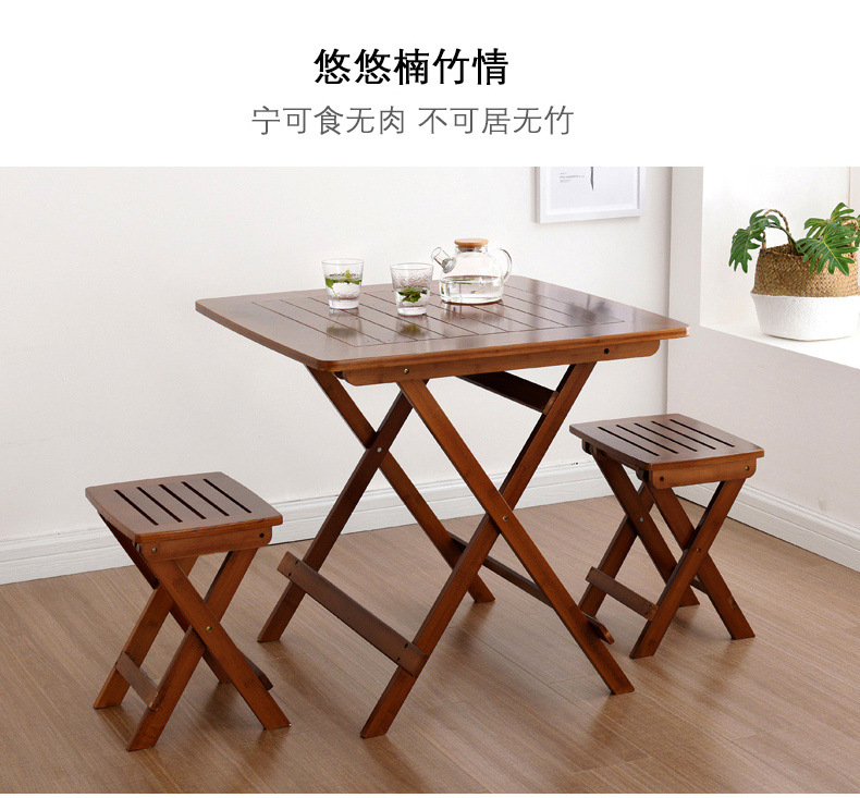 간단한 가정용 사각형 식탁, 간단하고 휴대 가능한 식탁, 작은 사각형 테이블, 야외 테이블, 식사용 접이식 테이블, 대나무스토어 가기
