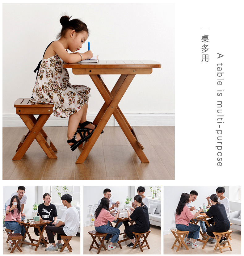 간단한 가정용 사각형 식탁, 간단하고 휴대 가능한 식탁, 작은 사각형 테이블, 야외 테이블, 식사용 접이식 테이블, 대나무