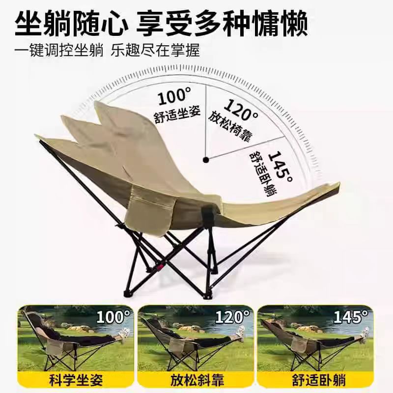 야외 접이식 안락 의자 조정 가능한 달 의자 휴대용 앉아서 눕는 낮잠 안락 의자 다리 받침대 캠핑 의자