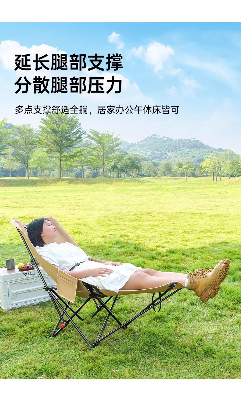 야외 접이식 안락 의자 조정 가능한 달 의자 휴대용 앉아서 눕는 낮잠 안락 의자 다리 받침대 캠핑 의자스토어 가기