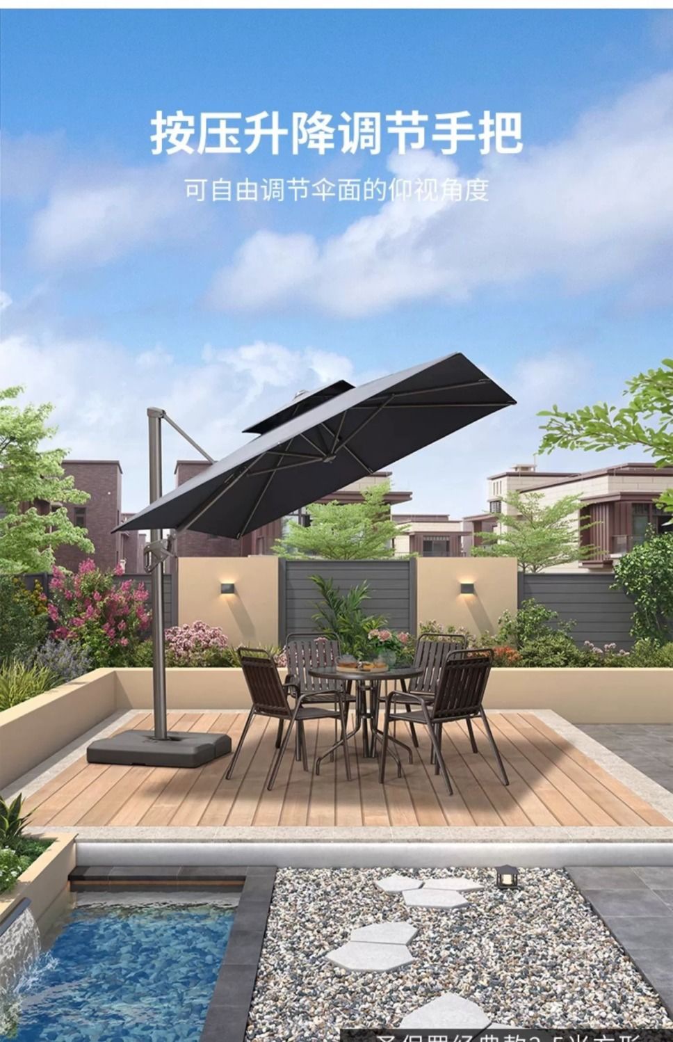 보라색 잎 야외 파라솔 빌라 로마 우산 야외 우산 정원 태양 우산 안뜰 우산 야외 테라스 스톨 우산