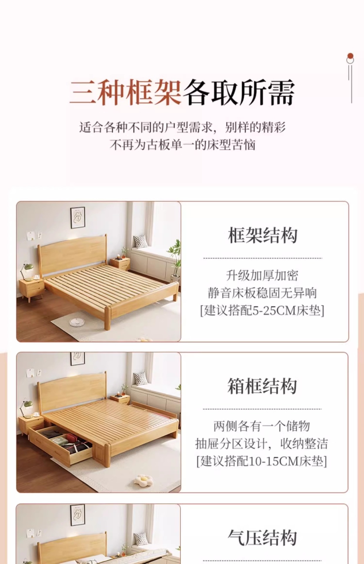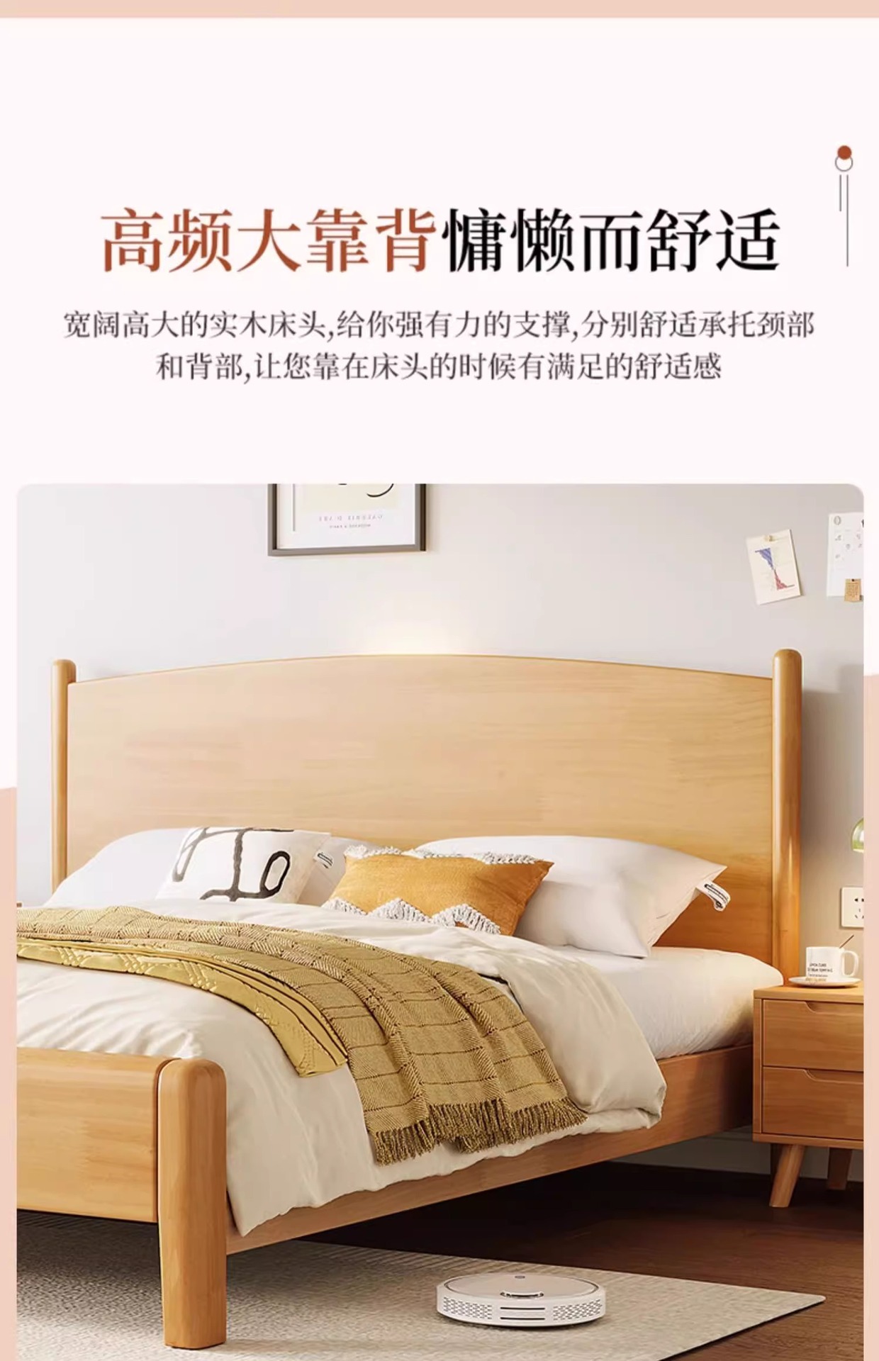 북유럽 전체 단단한 나무 침대 현대 간단한 마스터 침실 홈 더블 침대 로그 스타일 1.8m 공기 압력 높은 상자 저장 대형 침대스토어 가기