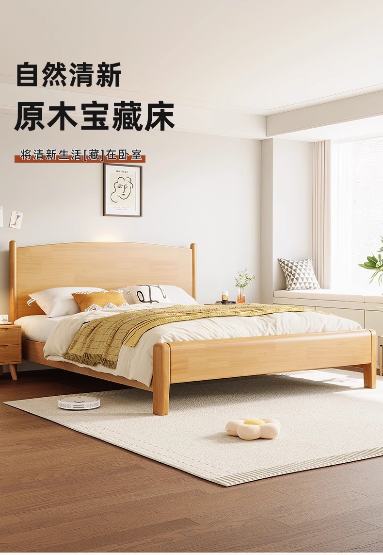 • 1.5*2m; 박스 프레임 구조; 침대+침대 옆 탁자*2; 원래 나무 색상