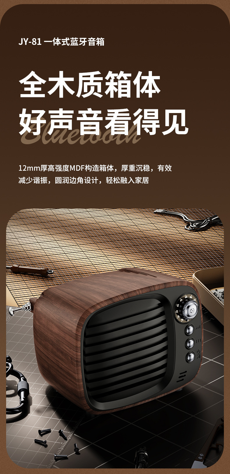 홈 레트로 블루투스 오디오 카드 라디오 스피커 무선 레트로 우드 그레인 블루투스 스피커 서브 우퍼 데스크탑