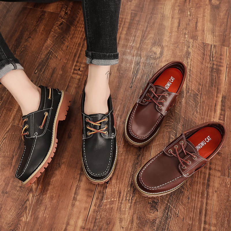 동우 야외 신발 공장 진짜 소 가죽 신발 마틴 신발 복고풍 요트 신발 작업 신발 DONGWU CAT 남성용 캐주얼 신발