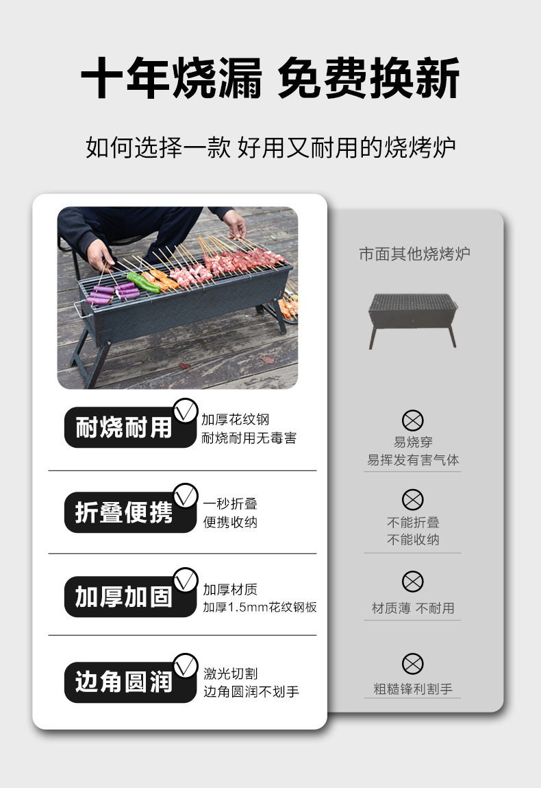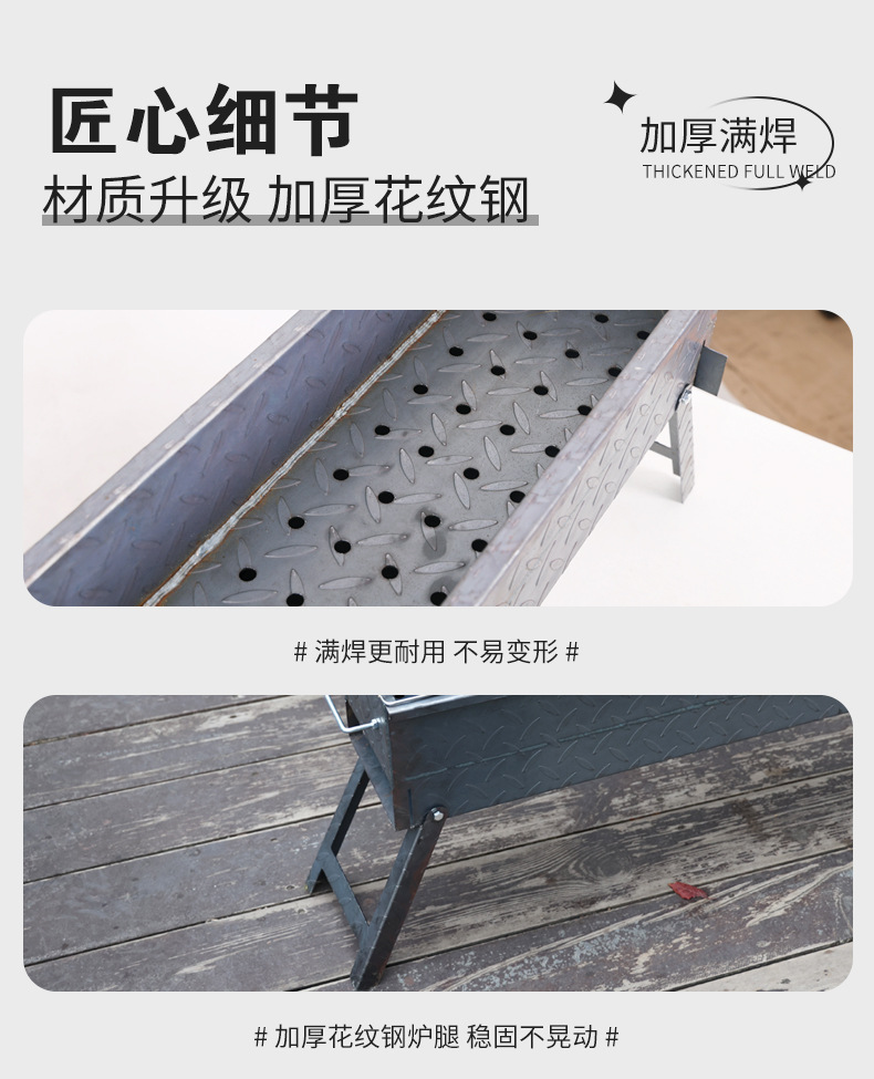 두꺼운 가정용 야외 구식 바베큐 그릴 캠핑 상업용 스톨 패턴 강철 접이식 스토브 숯불 그릴