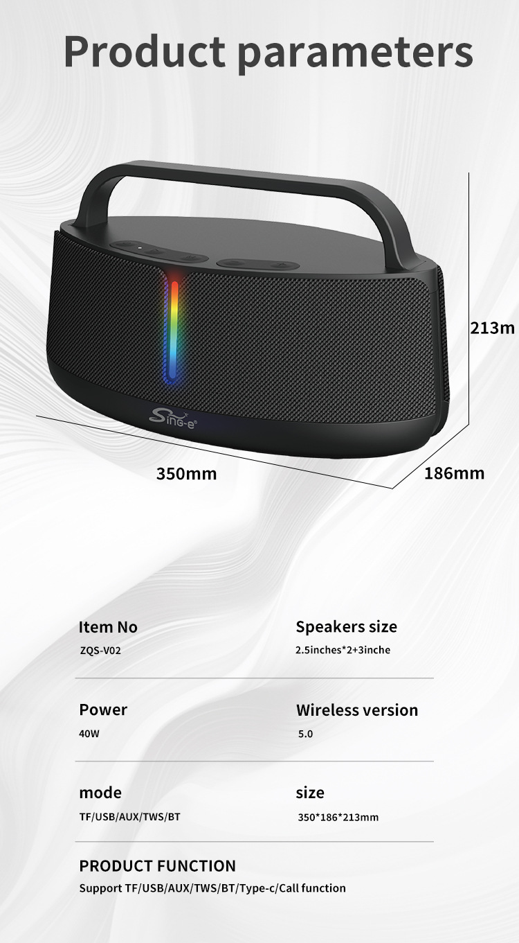 功能:TF/USB/AUX/TWS/BT/Type-c/通话功能